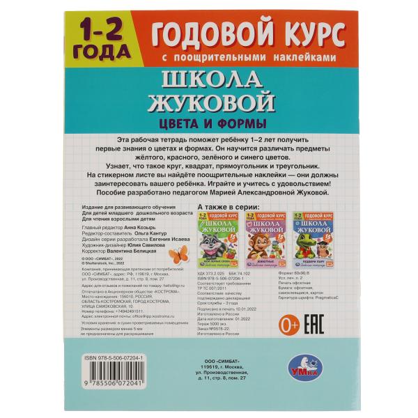 Цвета и формы. Годовой курс с поощрительными наклейками. Школа Жуковой. 1–2 года. Умка. в кор.50шт
