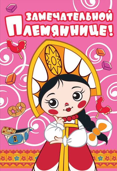 ЦР2-12326 Открытка среднего формата Замечательной племяннице! Текст, м-ф Вовка в тридевятом царстве (пластизоль)