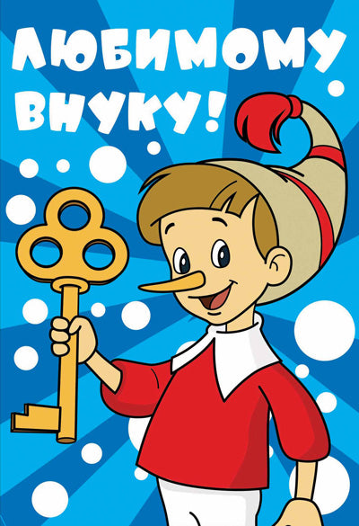 ЦР2-12328 Открытка среднего формата Любимому внуку! Текст, м-ф Приключения Буратино (пластизоль)
