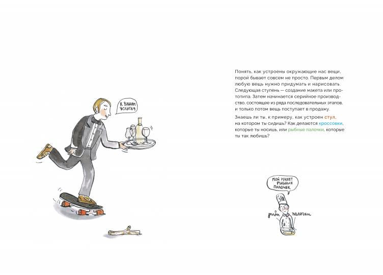 Какие только вопросы не задают дети: из чего сделан вафельный рожок, почему пенится мыло, правда ли для сладостей нужна свёкла, почему рыбные палочки совсем не похожи на рыбу или как, например, тонкий грифель карандаша затолкали в деревяшку. Всем любознательным посвящается книга "Что из чего сделано?". В ней наглядно, с помощью схем и рисунков, показано, как создают кроссовки и пластиковые бутылки, как готовят рыбные палочки и майонез, как шины становятся такими прочными или почему в зимней куртке совсем не холодно.Знаменитый французский художник Гийом Рейнар в этот раз не только проиллюстрировал книгу своими милыми и атмосферными рисунками, но и сам написал её, открыв детям секреты изготовления самых разных повседневных вещей.Автор выбрал самые разные повседневные вещи, с которыми человек часто встречается в своей жизни. Теперь если у детей возникают вопросы: а как приготовлен этот продукт, как сделали кино или появилась книга - достаточно взять в руки эту книгу, где подробно и понятным языком рассказываются все этапы создания тех или иных вещей.Для младшего и среднего школьного возраста.