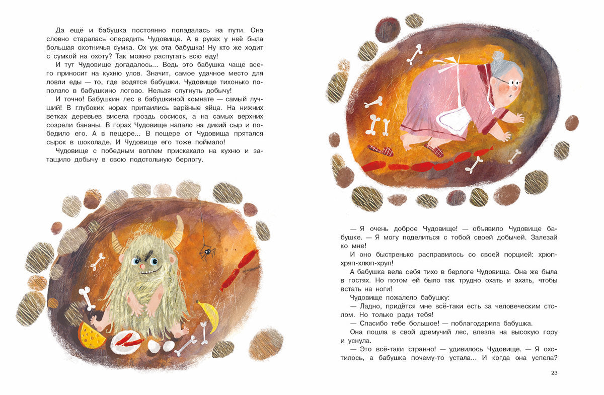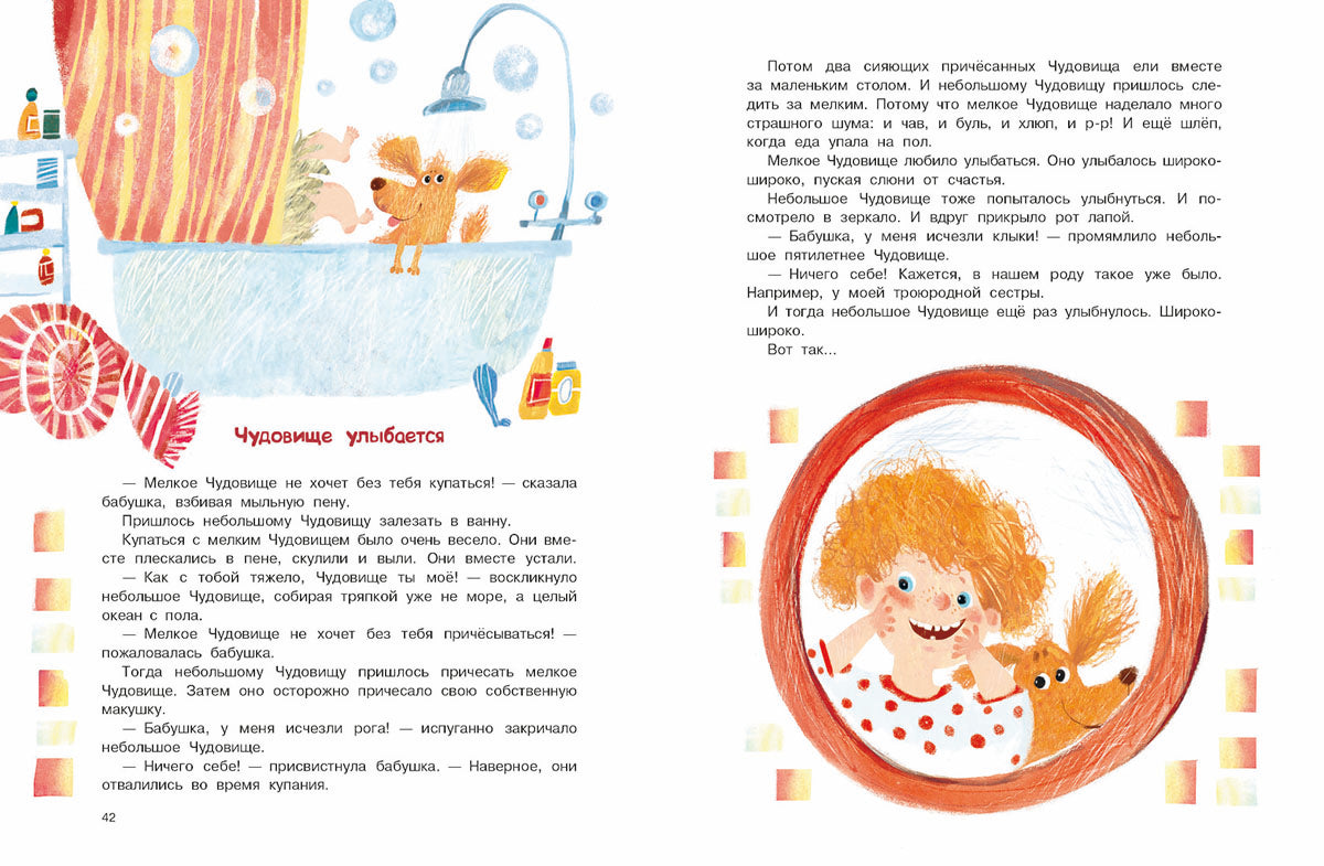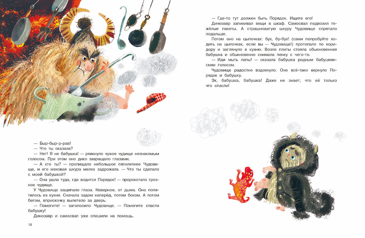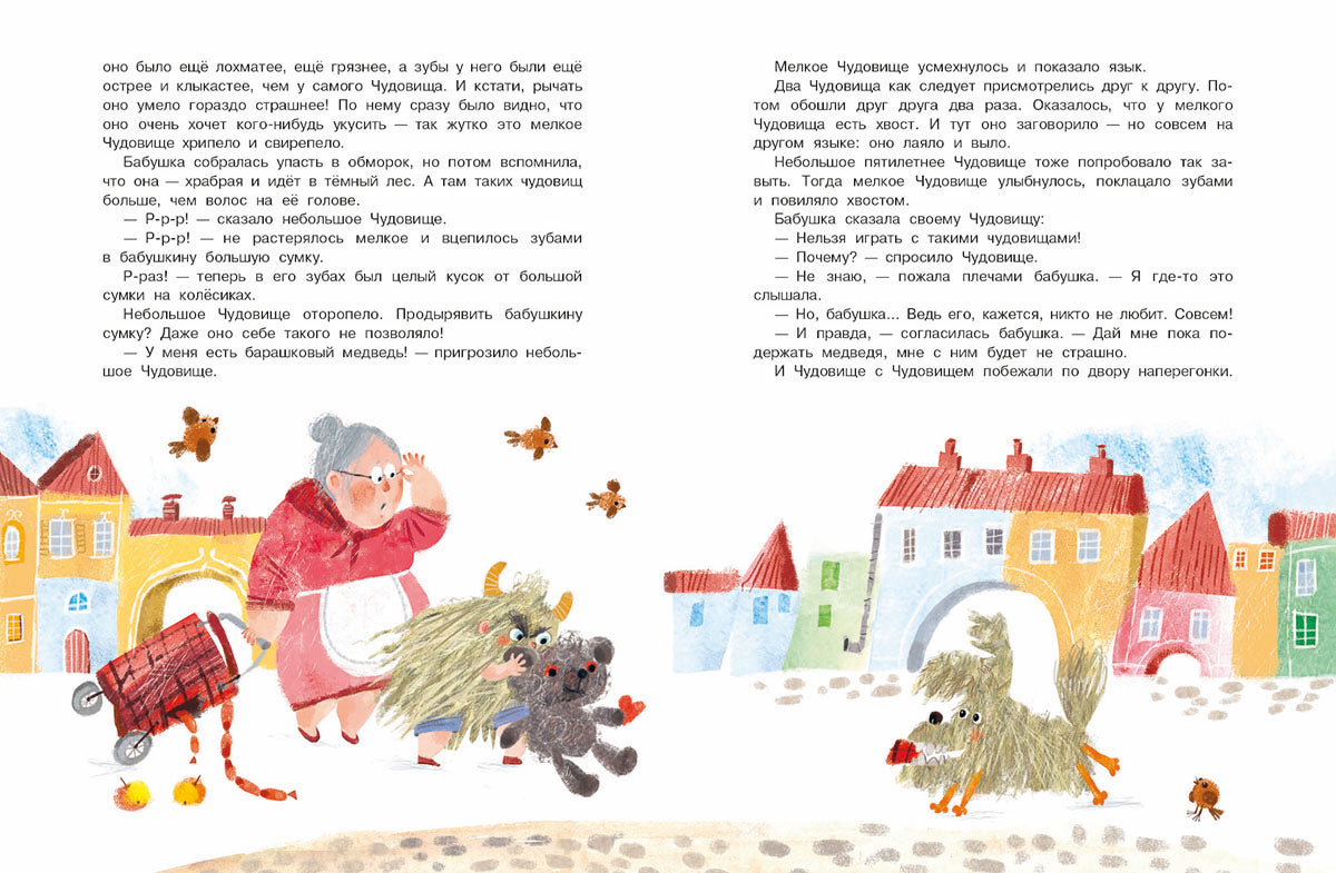 Когда раздаётся топот, и гром, и треск! Когда пол ходит ходуном, стулья ломаются сами собой, а ковры сворачиваются в трубочку! Когда в ванной разливается настоящее море, дедушка спасается бегством, а соседи покрепче прикручивают люстру к потолку! Тогда в квартире номер пять начинается большой тарарам… или обычное утро небольшого пятилетнего Чудовища. Хорошо, что бабушка у него самая храбрая: только она знает, как совладать с чудовищными порядками. Но даже ей иногда очень хочется, чтобы Чудовище научилось вести себя прилично. Для начала всего-то и нужно — попробовать улыбнуться!