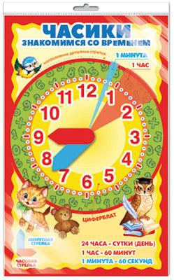 *Ч-15145 МИНИ-ПЛАКАТ В ПАКЕТЕ. Часики с двигающимися стрелками. Наглядное пособие и задания для детей (в индивидуальной упаковке, с европодвесом и клеевым клапаном)