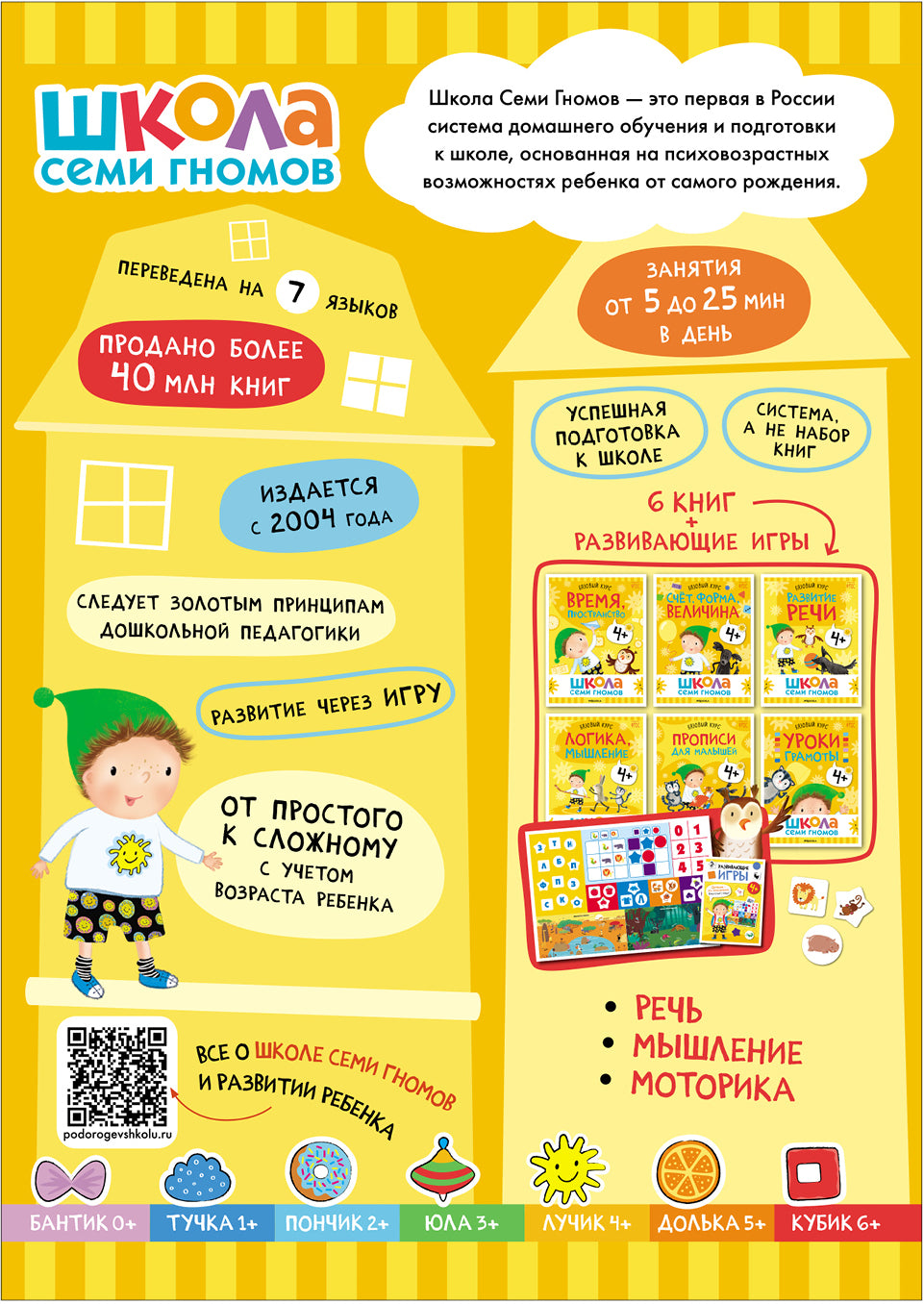 Базовый курс 4+ (Серия «Школа Семи Гномов. Базовый курс»), 6 книг + развивающие игры Школа Семи Гномов – это система, а не набор книг. Комплекс из 6 книг Базового курса направлен на развитие когнитивных способностей ребенка: познавательный интерес, умение думать, анализировать, делать выводы. Система выстроена таким образом, чтобы ребёнок получил необходимые знания в правильный момент. Поэтому все книги в Школе Семи Гномов имеют четкую возрастную адресацию и разработаны строго с учетом возрастных возможностей ребенка. Но самое важное, чтобы занятия...