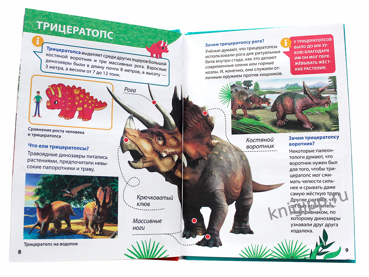 Handling time: 24 days Перед вами книга о самых загадочных существах, живших на нашей планете — о динозаврах. Раскрыв её, малыш познакомится с травоядными и хищными ящерами, узнает о происхождении их названий, об их повадках и местах обитания. А ещё энциклопедия ответит на множество вопросов, которые волнуют каждого ребёнка: каких размеров были динозавры, на кого из современных животных были похожи и что они делали на земле много миллионов лет назад.