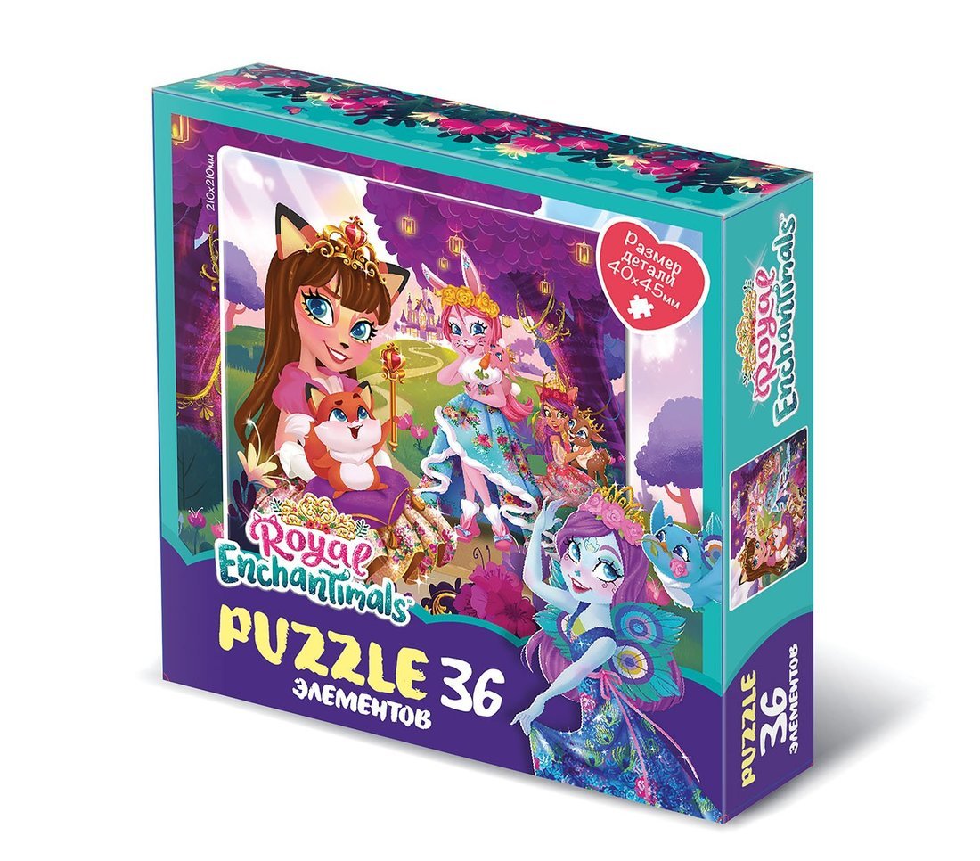 Handling time: 14 days Пазл из 36-ти элементов, основанный на приключениях любимых принцесс Энчантималс понравится любому ребенку, а сборка яркой картинки принесет радость не только малышам, но и их родителям. Интереснее всего будет собрать целую коллекцию новых пазлов!Размер пазла: 21х21 см. Размер детали: 2,6х3,7 см.Материал изготовления: картон.Рекомендованный возраст: 3 года +