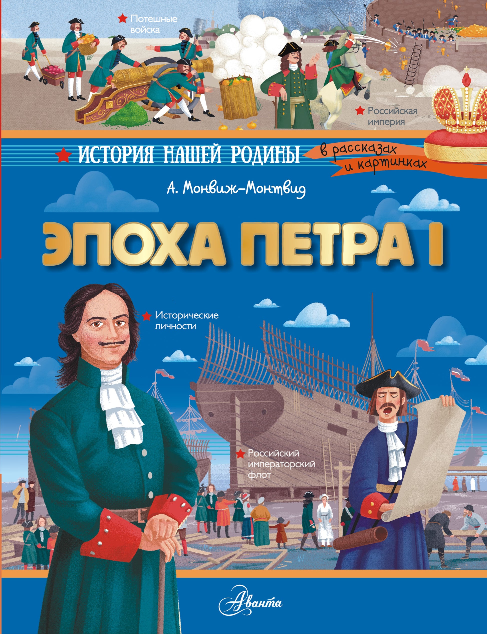 С книгой Александра Игоревича Монвиж-Монтвида "Эпоха Петра I" вы совершите путешествие по России конца XVII — начала XVIII века и познакомитесь с важнейшими реформами первого российского императора. Вы узнаете о том, как создавался военно-морской флот и регулярная армия, зачем строились новые заводы и школы, для чего Пётр I издал указ о бритье бород, когда была основана Кунсткамера. Вы прочтёте об учреждении ассамблей и нового летоисчисления, о праздновании Нового года и издании первой в России газеты, о строительстве Санкт-Петербурга и изменении русской азбуки. В конце книги размещены биографии сподвижников Петра Великого, без которых ему бы не удалось воплотить в жизнь многие преобразования.Для младшего школьного возраста.