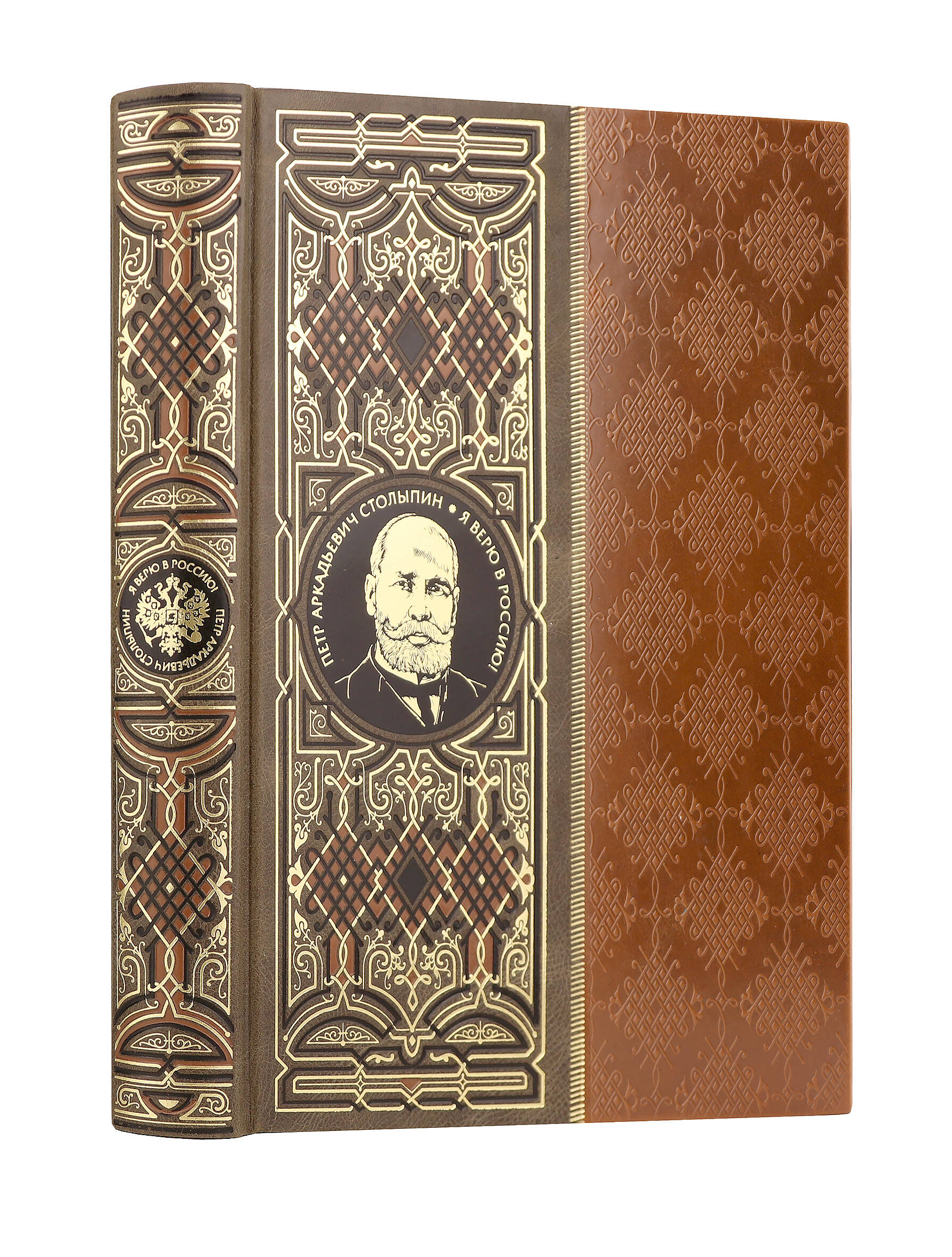 Handling time: 14 days Книга в коллекционном инкрустированном переплете. Переплет изготовлен их двух видов натуральной кожи по технологии XIX века и украшен сплошным тончайшим тиснением, в полном соответствии с лучшими образцами переплетов русских мастеров начала века. Использовано 3 вида тиснения — золото, натуральный пигмент и рельефное тиснение. На передней сторонке гравированный портрет Петра Столыпина. В оформлении переплета использованы растительно-геометрические орнаменты, благодаря им книга будет отлично смотреться на любой книжной полке. Лента для закладывания страниц и каптал, скрепляющий верх и низ объемного тома, изготовлены из шелка. Бумага в книге легкая, матовая, что обеспечивает комфортное чтение даже длительное время, цветные иллюстрации напечатаны на мелованной бумаге. Обрез книги окрашен, торшонирован и вызолочен вручную. К книге прилагается сертификат, отпечатанный на бумаге сорта «верже», подтверждающий уникальность издания, он вложен в каждый экземпляр и пронумерован вручную.