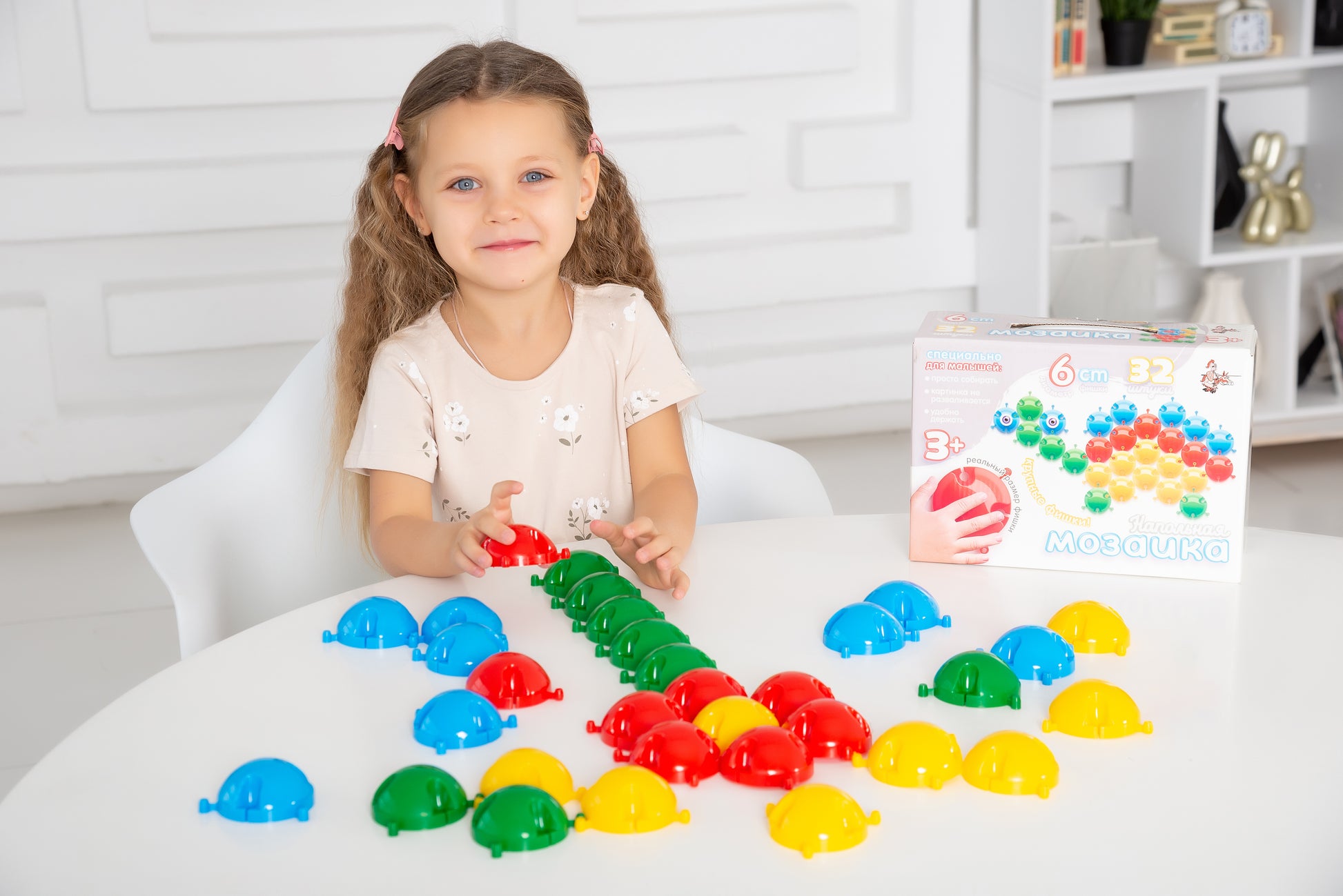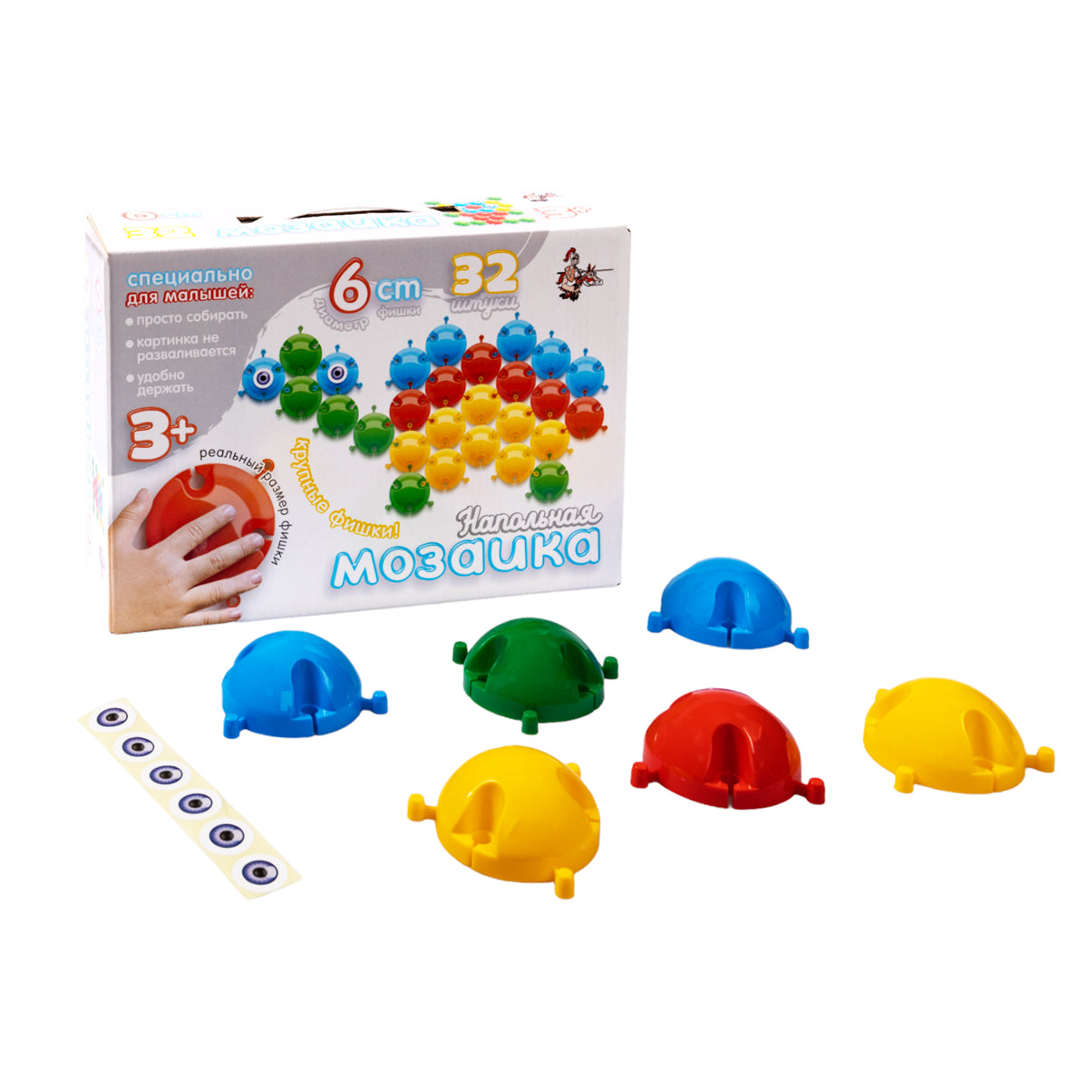 Handling time: 14 days В набор входят 32 яркие большие фишки четырех цветов. Он стоит меньше, чем мозаика данной серии, в которую входят 55 фишек, но не является при этом ущербным, так как благодаря нашим дизайнерам, позволяет собрать достаточно большое количество забавных картинок.Как и все мозаики данной серии, эта напольная мозаика предназначена специально для самых маленьких детей в возрасте от 2-х лет. Крупные шести-сантиметровые фишки безопасны для ребенка и хорошо ложатся в ладошку. Рекомендуемые картинки достаточно лаконичны для того, чтобы малышу не наскучило собирать любую из них. Специальные крепления легко соединяют фишки между собой, но в то же время делают картинки достаточно стабильными, их можно двигать, приподнимать и даже осторожно переносить. А когда ребенок закончил играть мозаику достаточно просто сложить стопкой, поэтому они не потеряются и займут мало места при хранении.