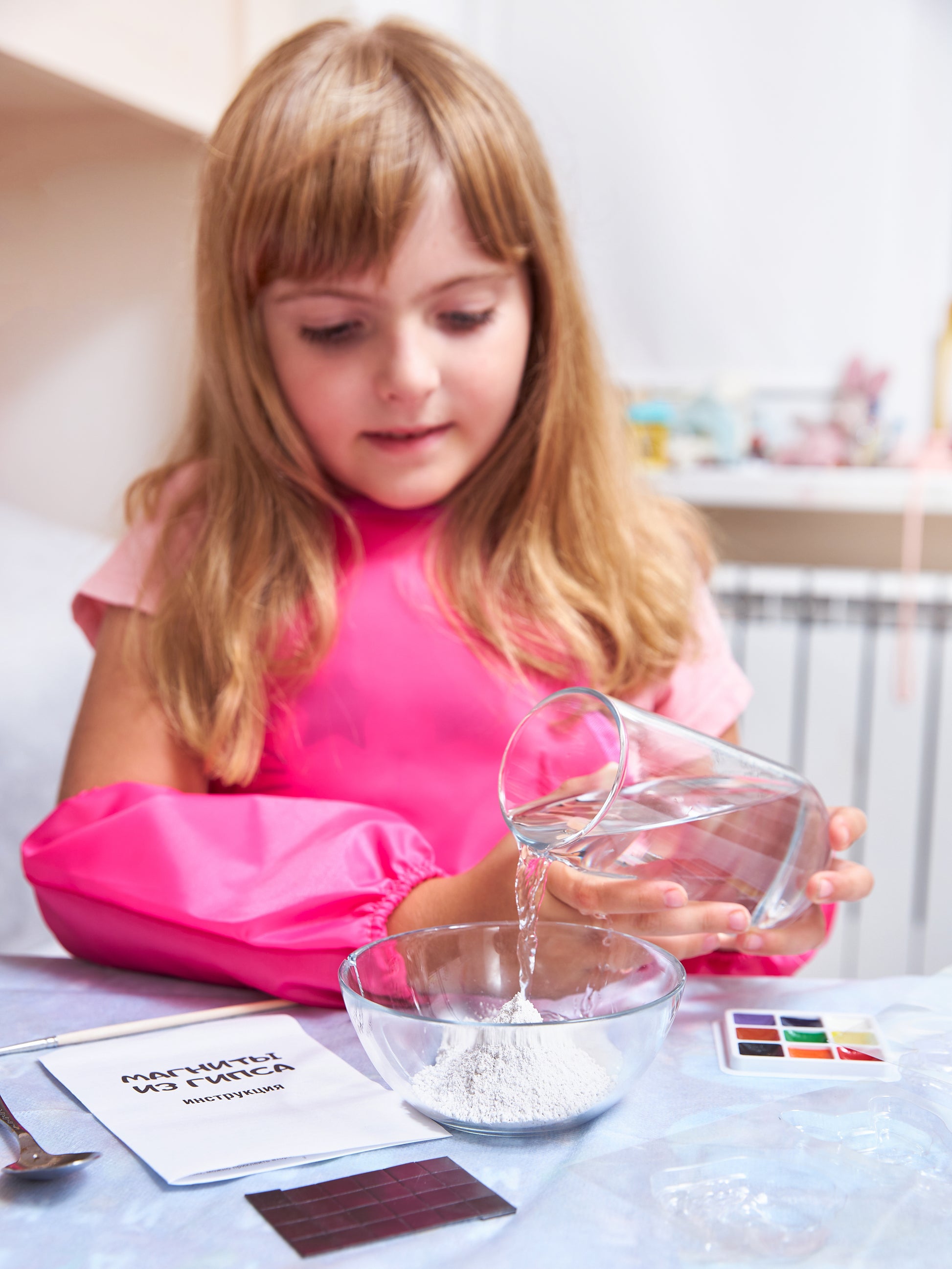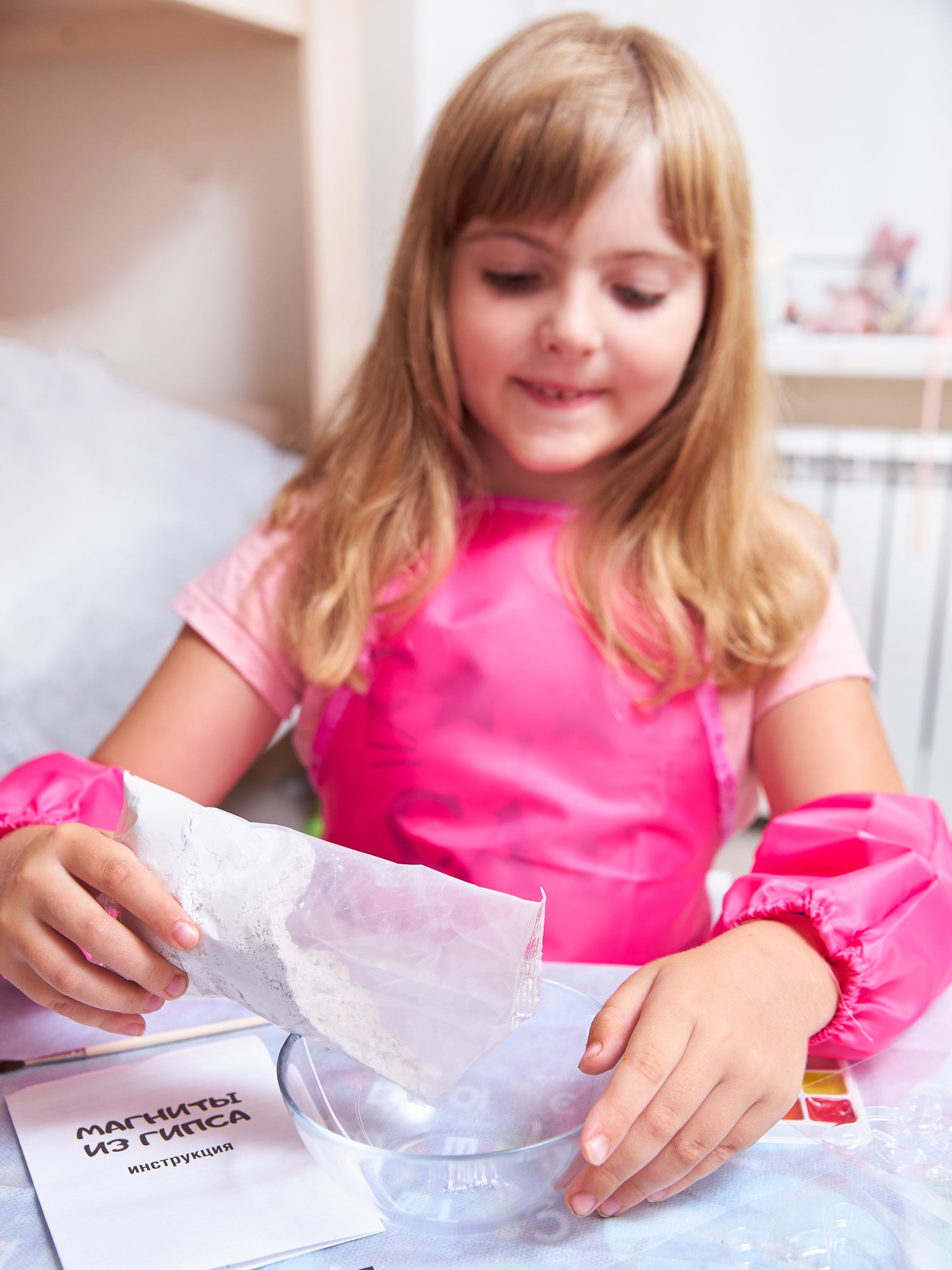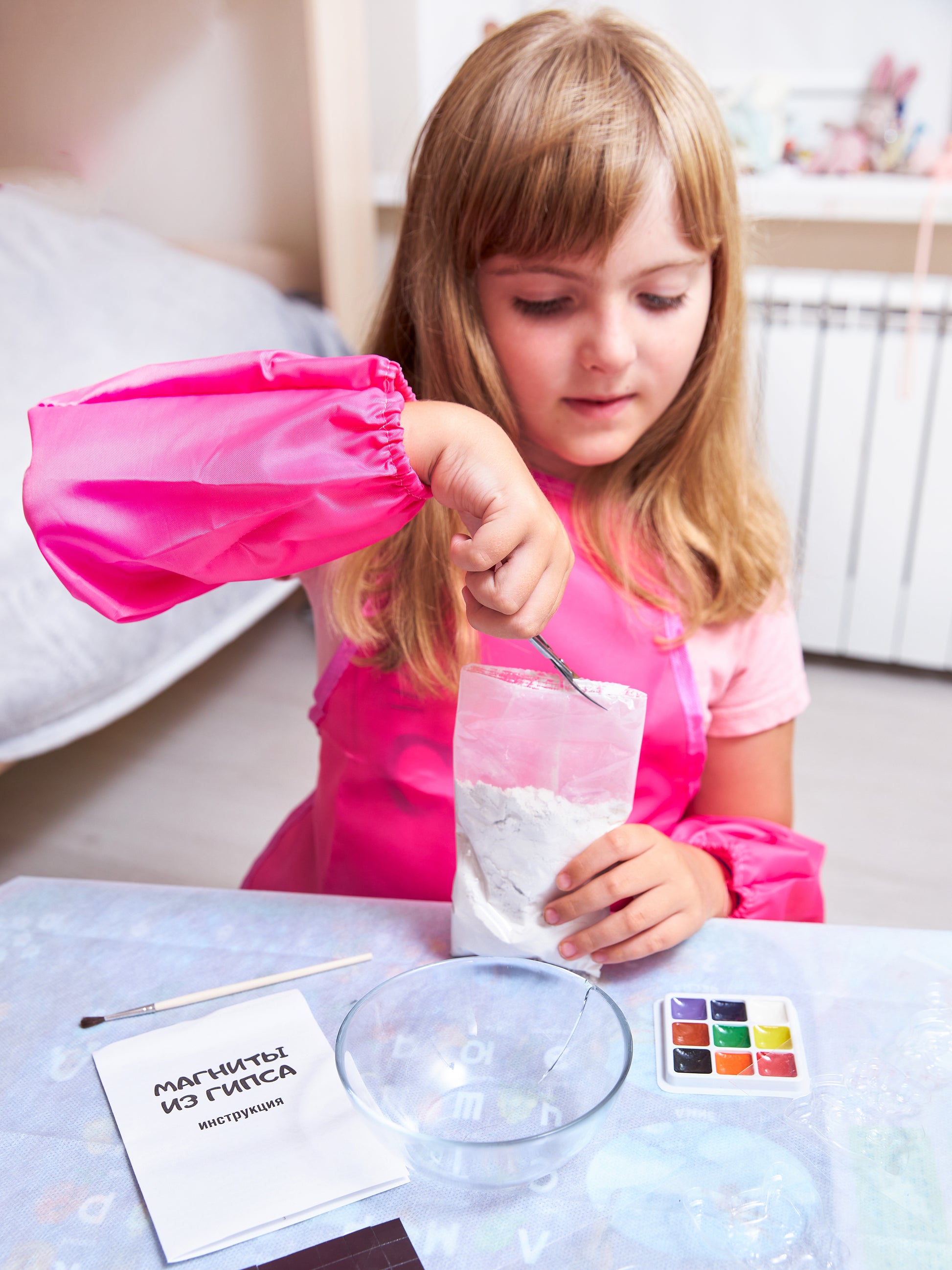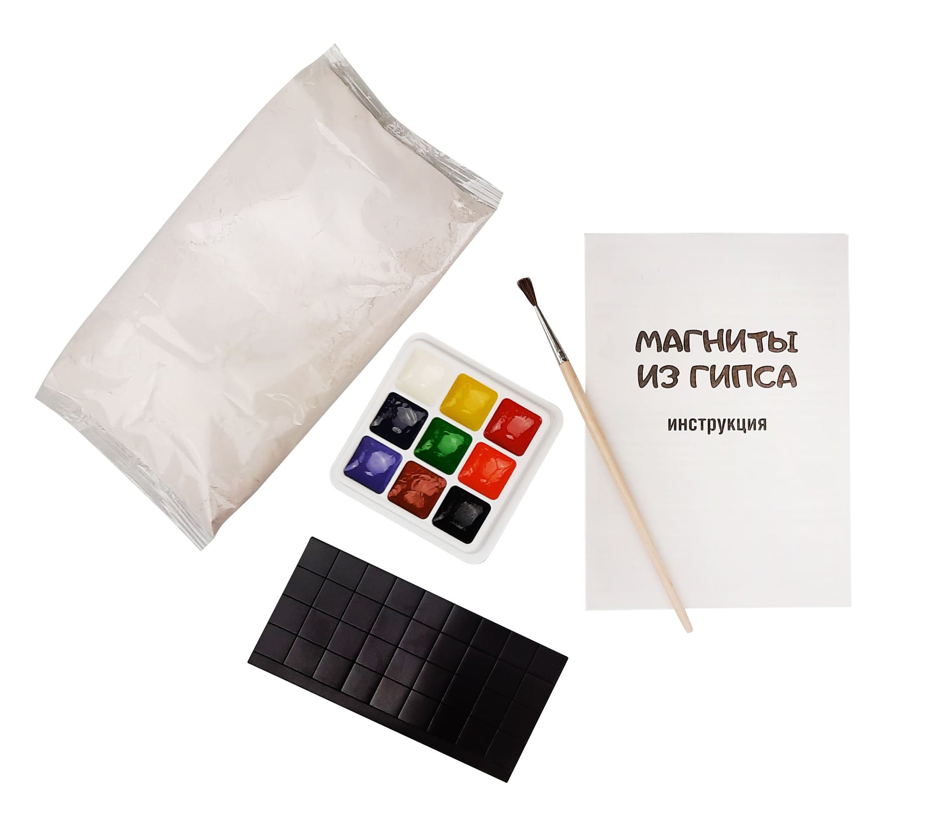 Handling time: 14 days Набор магнитов из гипса под роспись «Кораблик» включает в себя всё необходимое для создания оригинальной поделки своими руками.Помогите ребёнку развести и залить раствор в формочки, следуя пошаговой инструкции. Ребёнок с большим удовольствием примет участие в изготовлении магнитов и с интересом раскрасит готовые фигурки.Состав набора:• гипс – 1 пакет (150 грамм)• формочки для отливки (размер каждого элемента от 5 до 7 см) – 4 шт.• краски – 9 цветов• кисточка – 1 шт.• магнитная лента для крепления фигурок на металлической поверхности• инструкцияНабор предназначен для детей старше 4 лет.Как играть?Вам понадобится удобное рабочее место, которое желательно накрыть газетой или клеенкой. Лучше работать в фартуке или старой одежде, чтобы не бояться испачкаться.Запаситесь ёмкостью, в которой будете смешивать раствор гипса. Это может быть одноразовый стакан, стаканчик из-под йогурта или любая другая ёмкость, которую потом не жалко выбросить.Внимание! Запрещается выливать жидкий гипс в канализацию!