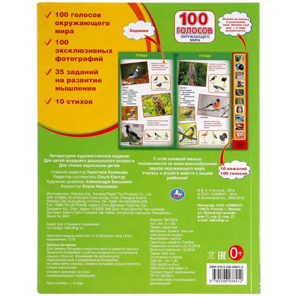 100 голосов окруж. мира (10 зв.кнопок, 100 звуков) 233х302мм 10 стр Умка в кор.24шт
