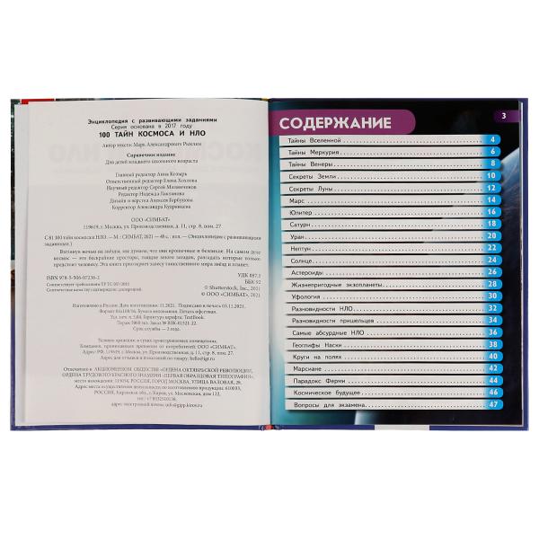 100 тайн космоса и НЛО. Энциклопедия с развивающими заданиями. 197х255мм. 48 стр. Умка. в кор.15шт
