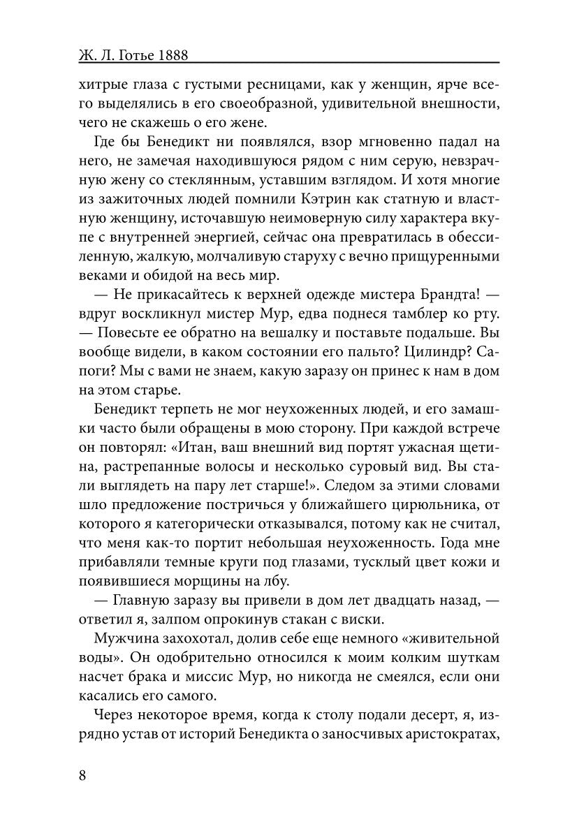 Handling time: 19 days Автор: Готье Ж. Л., «1888»: Разоренный ставками в покер, исчезнувший на полгода, озлобленный и больной детектив Итан Брандт возвращается обратно в столицу Англии осенью 1888 года. Своим приездом он вызывает напряженность в лондонском обществе, потому что никто из высокопоставленных чиновников не знает, на кого на этот раз будет собрано досье и кто снова станет участником фальшивого преступления. Сам Итан не желает возвращаться в круг аристократов, но все равно будет вовлечен в кровавый конфликт между ними и неохотно займется расследованием жутких убийств, погрузивших мокрый, одуряющий и угрюмый Лондон в оторопь и ужас на долгие месяцы.
