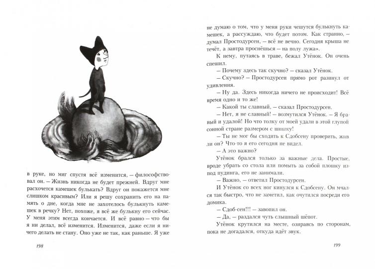 Повседневная жизнь всех шестерых - наивного Простодурсена, надёжного Ковригсена, неугомонной Октавы, непутёвого Сдобсена, вредного Пронырсена и Утёнка, умеющего отыскать необычный смысл в обычных вещах, - неспешна и подробна. В этом завораживающем мире то ли сказки, то ли притчи времена года смеют друг друга, герои ссорятся и мирятся, маются от одиночества и радуются праздникам, мечтают о неведомой загранице и воплощают мечту о золотой рыбке...