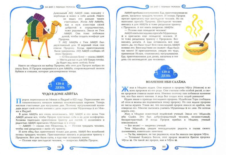 Handling time: 24 days Уважаемые читатели! Эта книга приглашает Пророка в ваш дом, он будет вашим гостем все 365 дней, благословляя вас и ваших домочадцев своим присутствием, озаряя поистине божественным ореолом вашу обитель. Эту книгу мы предлагаем читать на протяжении всего года, потому в ней и нашли отражение 365 историй из жизни Пророка, представленные в форме хронологически последовательных рассказов. Предназначена книга прежде всего для детей - пусть каждый день они слушают по одному рассказу из этой книги. Предметный указатель, приведенный в книге, поможет вам легко и удобно отыскать фрагменты, касающиеся несравненных качеств Пророка и его сподвижников - щедрости, преданности, гостеприимства, честности, миролюбивости, милосердия; воспитать характер ребенка на примере высоких идеалов поведения.