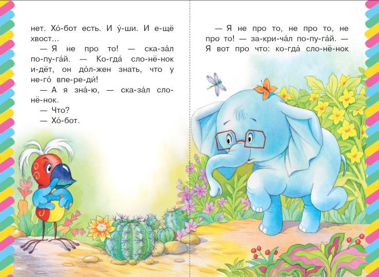 Ваш малыш уже знает буквы и его ручки тянутся к книжкам?Покажите ему серию "Сам читаю по слогам". Это книжки небольшого формата, с большими буквами, и все слова разбиты на слоги с ударениями. В этой серии собраны лучшие произведения классиков детской литературы - С. Маршака, С. Михалкова, Э. Успенского, Г. Остера, В. Сутеева и других знаменитых писателей и поэтов. Каждую книгу маленькие мальчики и девочки смогут прочитать сами от начала и до конца. А потом будут гордо говорить: "Вот мои первые прочитанные книжки. Хочу читать ещё!".В этой книге малыши познакомятся с весёлой историей Г. Остера "Куда идёт слонёнок".Для дошкольного возраста.Крупный шрифт, разбивка на слоги, ударения, запоминающиеся цветные иллюстрации - в книгах серии "Сам читаю по слогам" есть всё необходимое для формирования у ребенка прочного навыка чтения и стимулирования устойчивого интереса к книге.А еще это прекрасная возможность познакомиться с лучшими произведениями любимых детских авторов, многие из которых стали неотъемлемой частью отечественной культуры. Знать их - признак образованного, культурного человека.Идеальное сочетание "цена-качество! Книги не будут обременительны для семейного бюджета и принесут массу пользы, создадут прекрасное настроение.Весёлую историю Г. Остера "Куда идёт слонёнок" многие знают по известному советскому мультфильму. Теперь же начинающие читатели могут самостоятельно познакомиться с его литературным источником. История научит малышей дружбе, доброте и умению следовать своей цели.