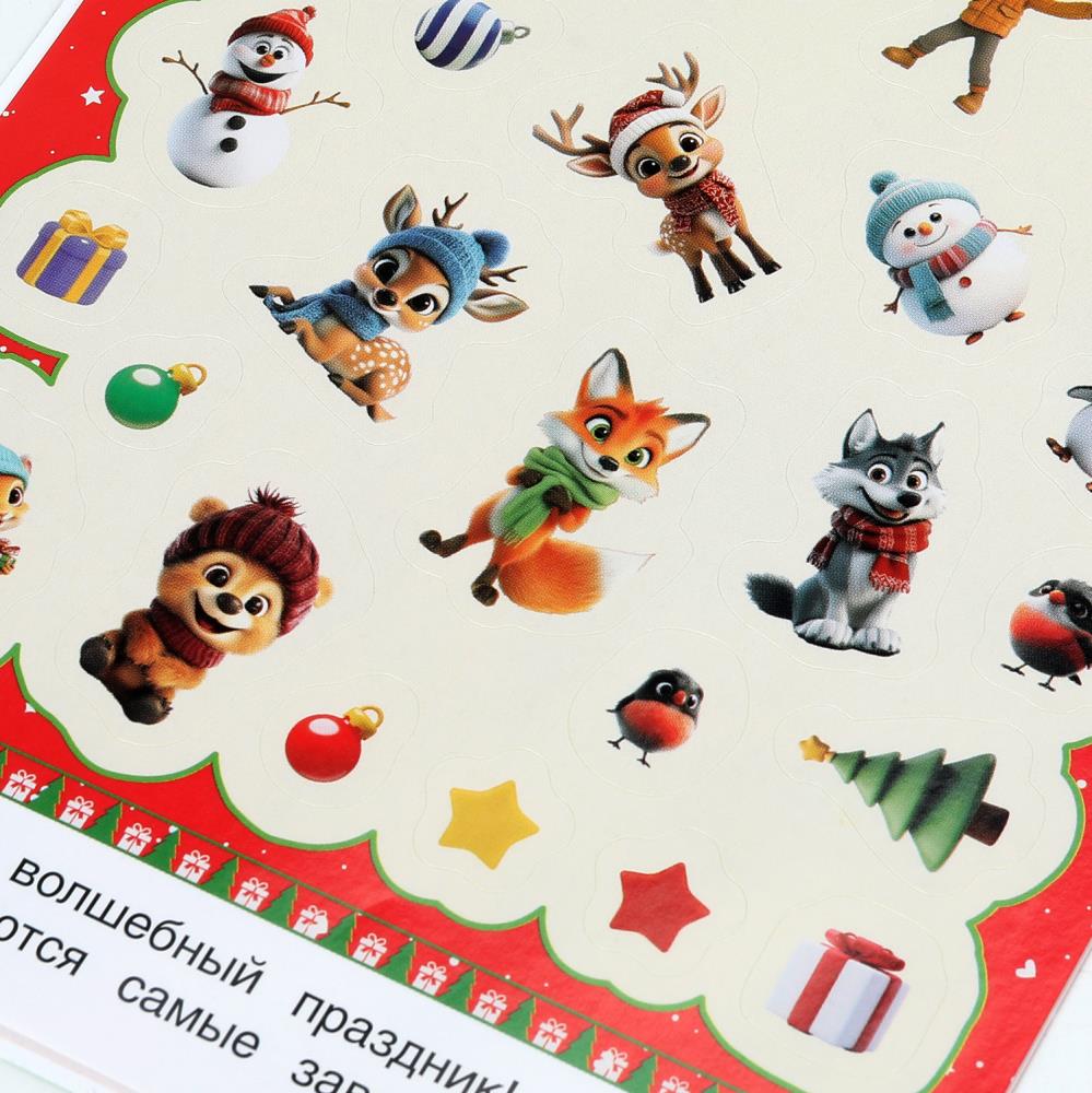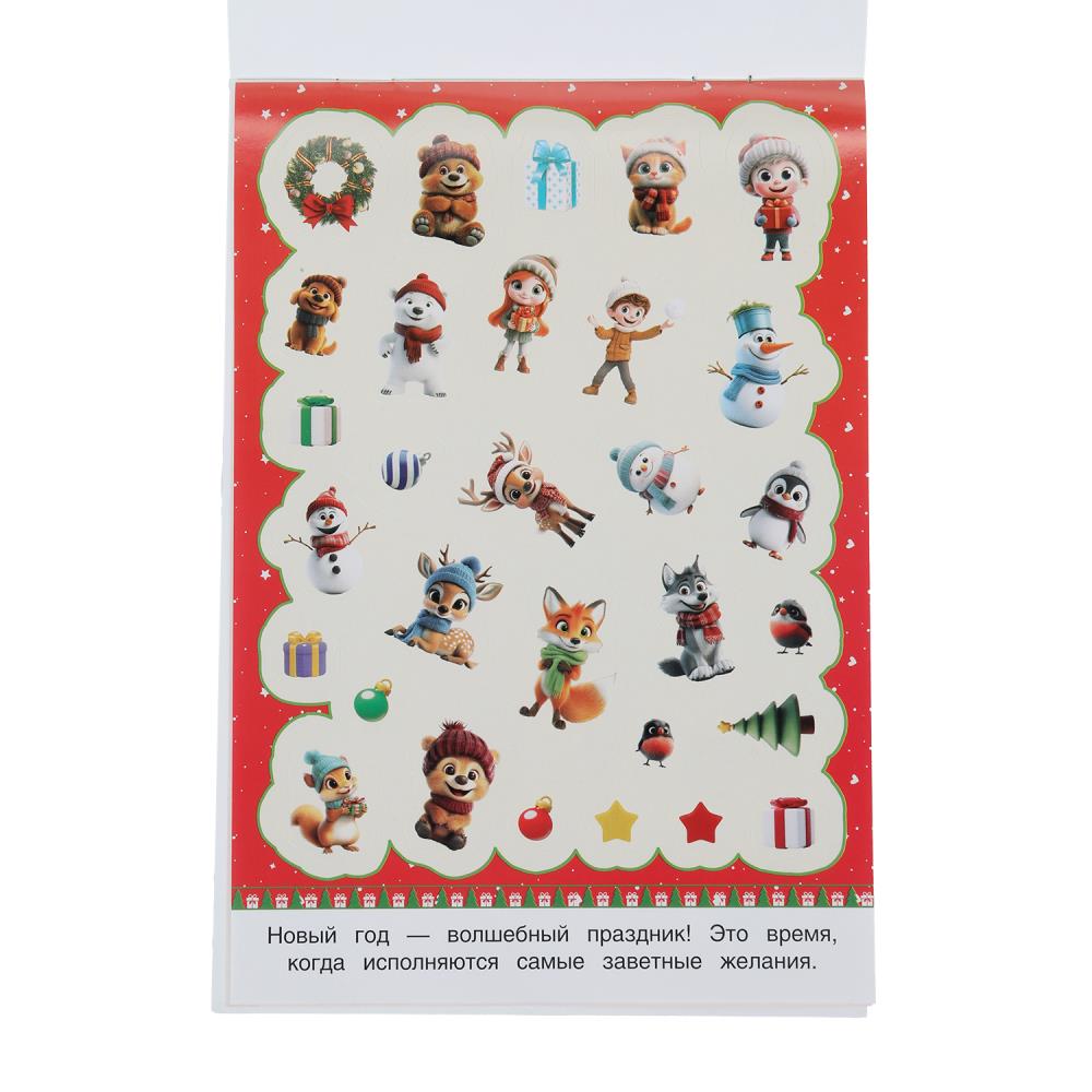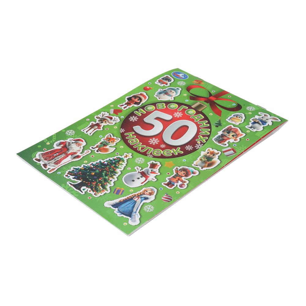 50 новогодних наклеек. 50 наклеек. 145х210 мм. Скрепка. 4 стр. Умка в кор.50шт