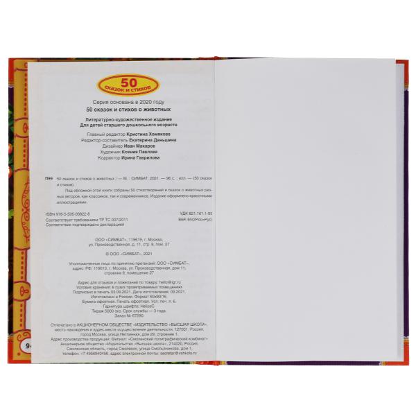 Handling time: 14 days Книга "50 сказок и стихов о животных. Ушинский К. Д., Толстой Л. Н., Афанасьев А. Н. и др, Умка в кор.24шт". Издательство: Умка. Стандарт: 1. Страна производитель: РОССИЯ. Высота: 22. Ширина: 15. Глубина: 1.
