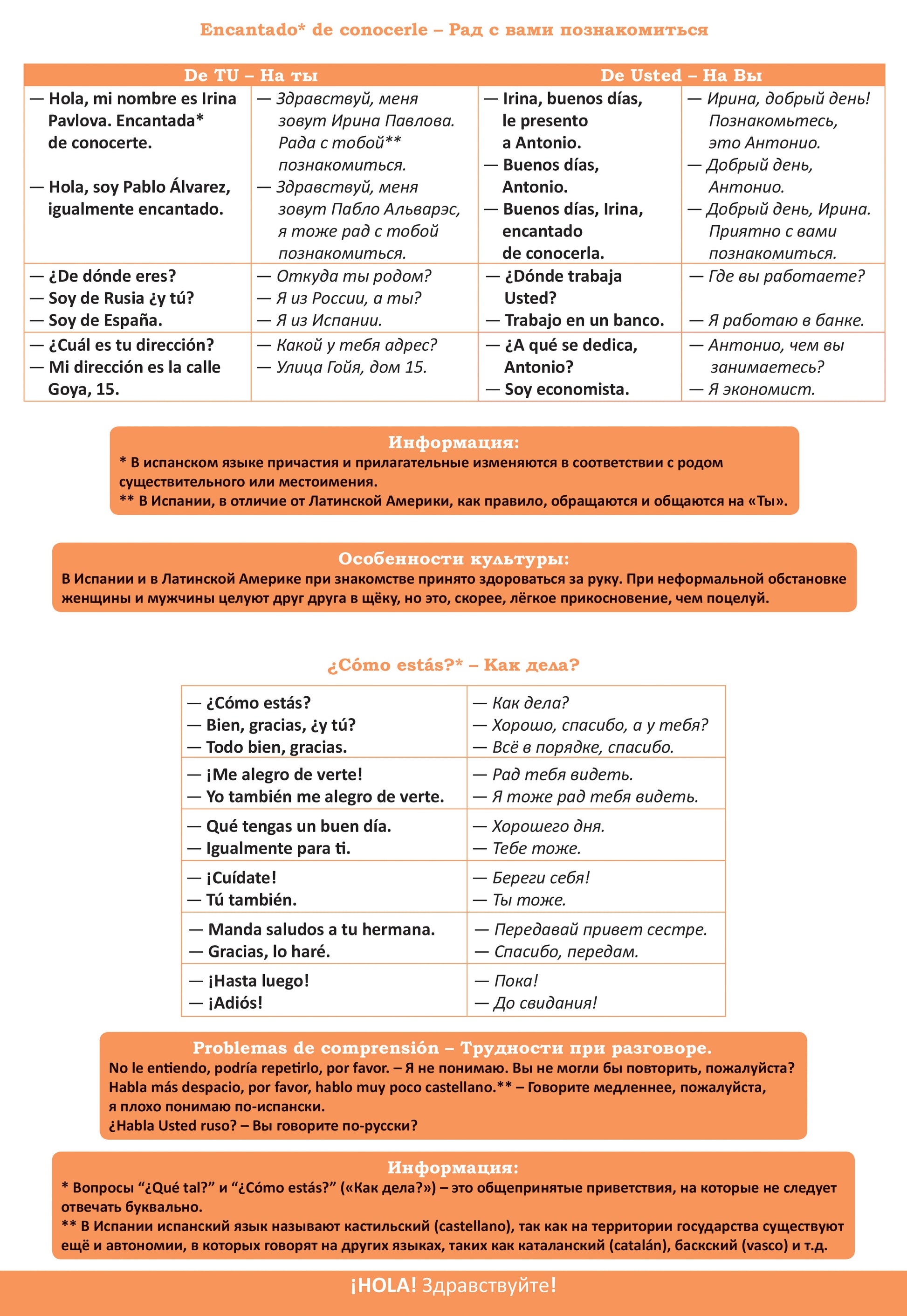Handling time: 24 days Книга ""7 шагов к общению. Разговорный ИСПАНСКИЙ язык" Идея Клементьевой Т.Б. Книга для Говорящей ручки ЗНАТОК 2-го поколения". Издательство: Знаток. Год выпуска: 2017. Переплет: Мягкий переплет, на спирали. Автор: Клементьевой Т.Б. Стандарт: 48.