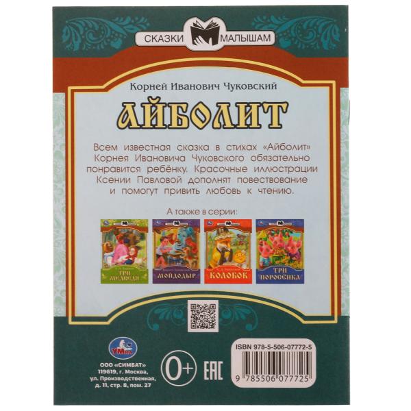 Книга "978-5-506-07772-5336547 Айболит. К. И. Чуковский. Сказки малышам. 145х195мм. Скрепка. 14 стр. Умка в". Издательство: Умка. Количество страниц: 14.