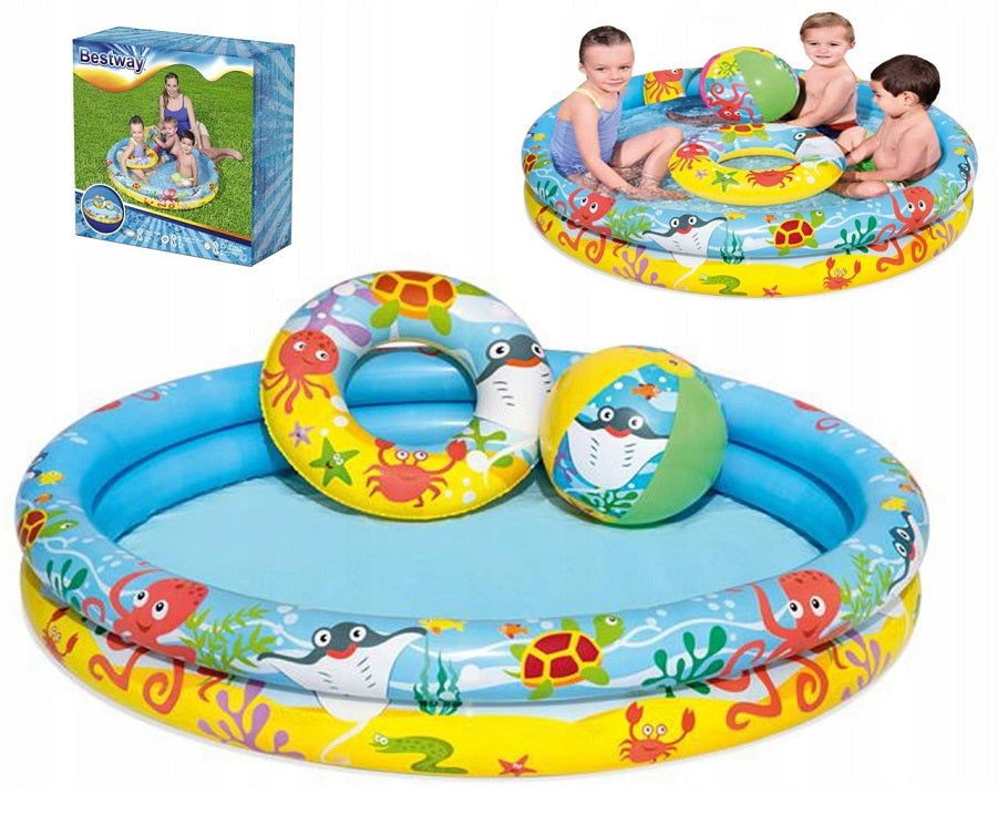 Bestway. Надувной бассейн + набор 122 х 20 см (в к-те: круг, мяч, рем.заплатка) арт.51124