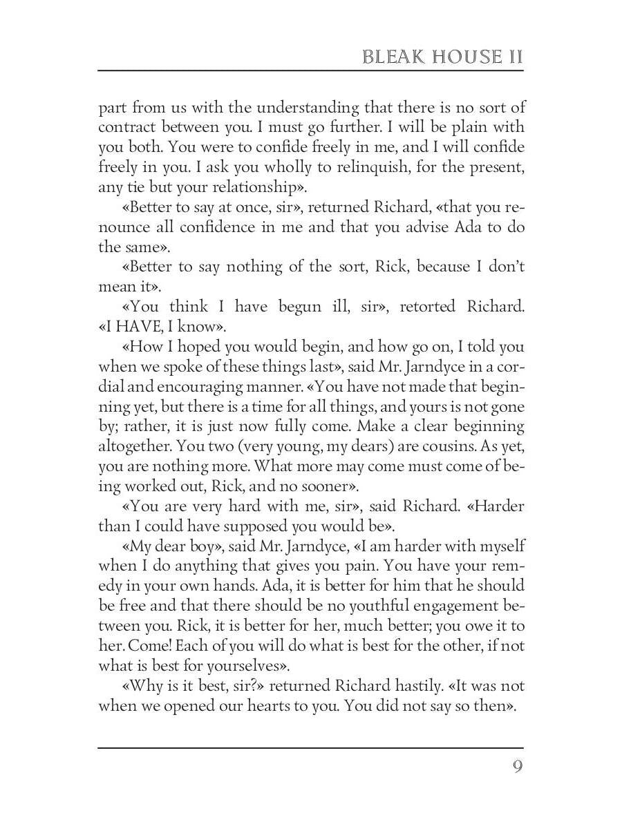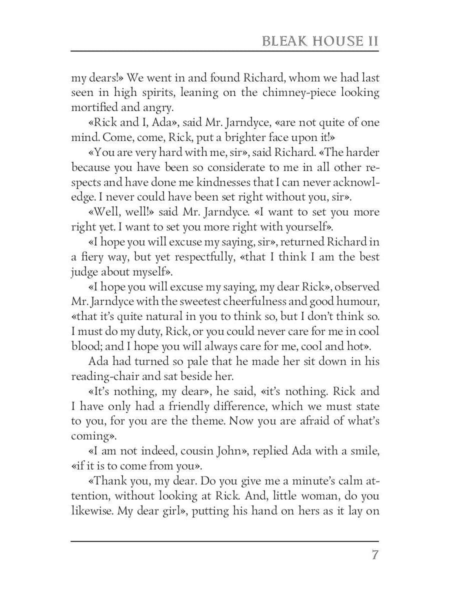 Handling time: 19 days Автор: Dickens Charles, «Bleak House II = Холодный дом 2: роман на англ.яз»: Bleak House opens in the twilight of foggy London, where fog grips the city most densely in the Court of Chancery. The obscure case of larndyce and Jarndyce, in which an inheritance is gradually devoured by legal costs, the romance of Esther Summerson and the secrets of her origin, the sleuthing of Detective Inspector Bucket and the fate of Jo the crossing-sweeper, these are some of the lives Dickens invokes to portray London society, rich and poor, as no other novelist has done.