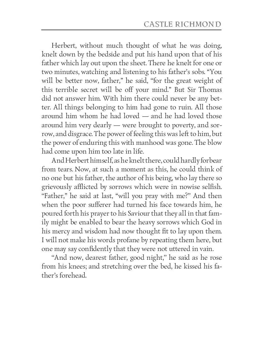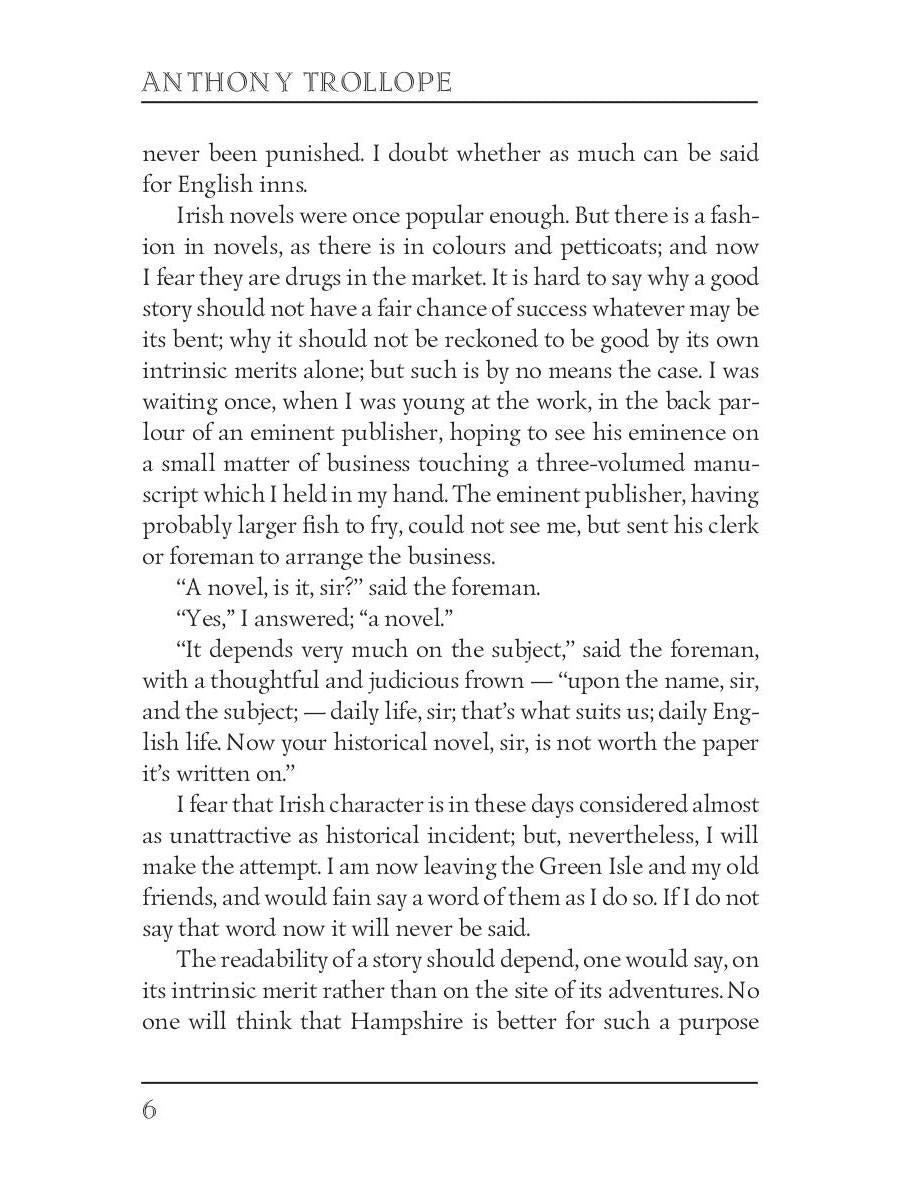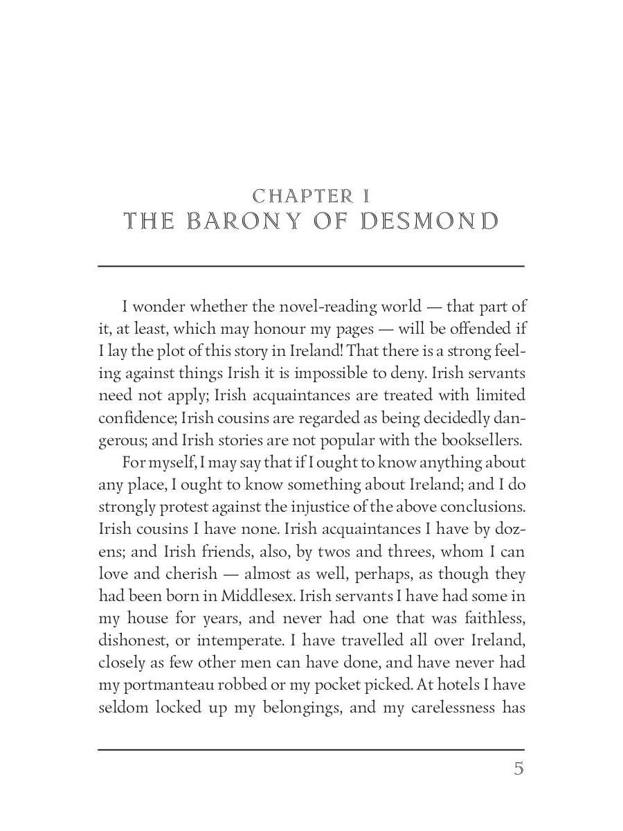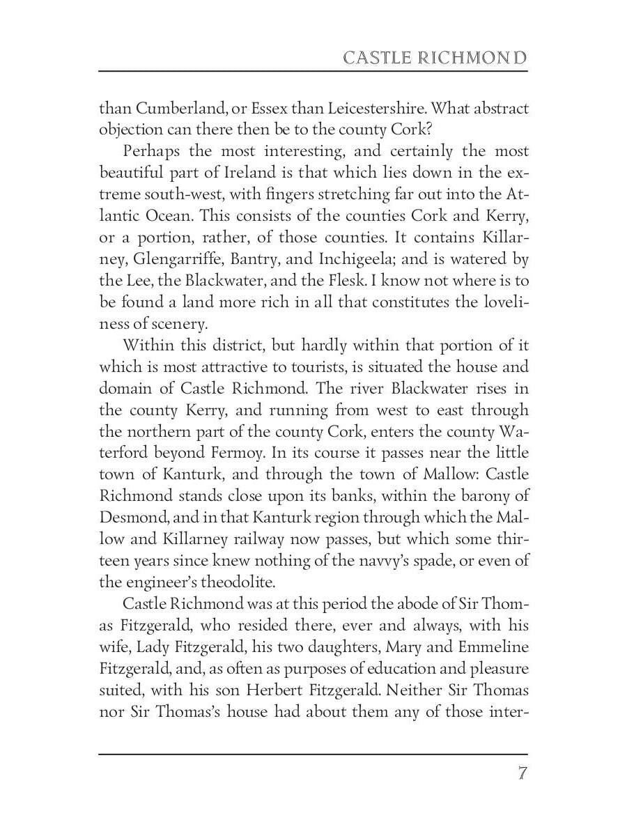 Handling time: 19 days Автор: Trollope A., «Castle Richmond 1»: Anthony Trollope (1815—1882) was an English novelist of the Victorian era. Among his best-known works is a series of novels collectively known as the Chronicles of Barsetshire, which revolves around the imaginary county of Barsetshire. "Castle Richmond" is the third of five Trollope's novels set in Ireland. The plot of the novel features the competition of two Protestant cousins of English origin, Owen Fitzgerald and Herbert Fitzgerald, for the hand of Clara Desmond, the noble but impoverished daughter of the widowed Countess of Desmond