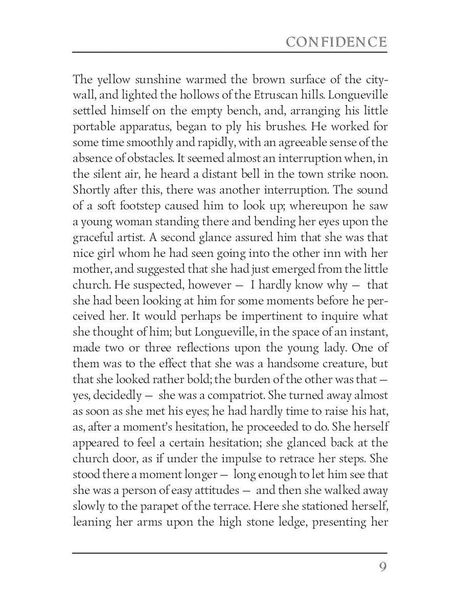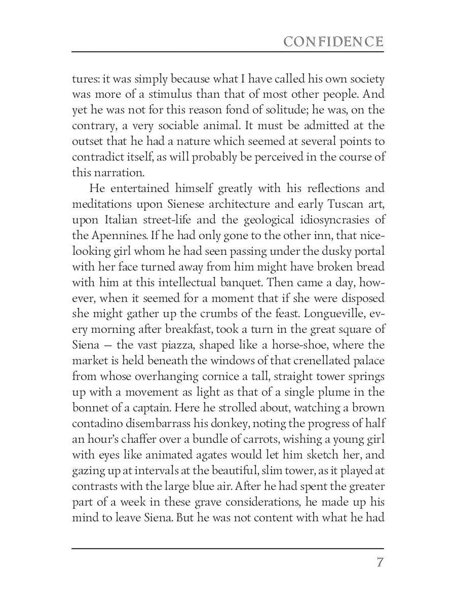 Handling time: 19 days Автор: James Henry, «Confidence = Уверенность (на английском языке)»: Henry James (1843—1916) was an American author regarded as a key transitional figure between literary realism and literary modernism. «Confidence» is a great novel which centers on artist Bernard Longueville, scientist Gordon Wright, and the sometimes inscrutable heroine, Angela Vivian. The plot rambles through various romantic entanglements before reaching an uncomplicated, but still believable happy ending.
