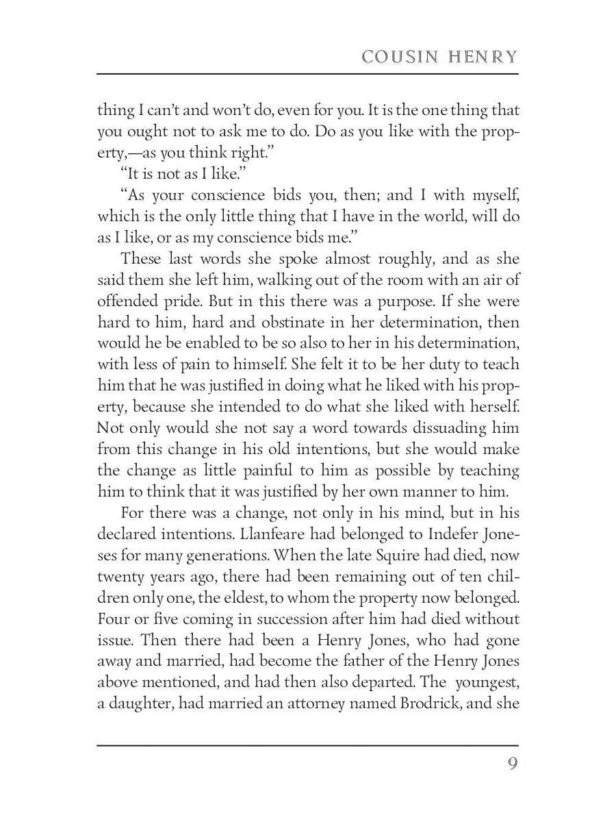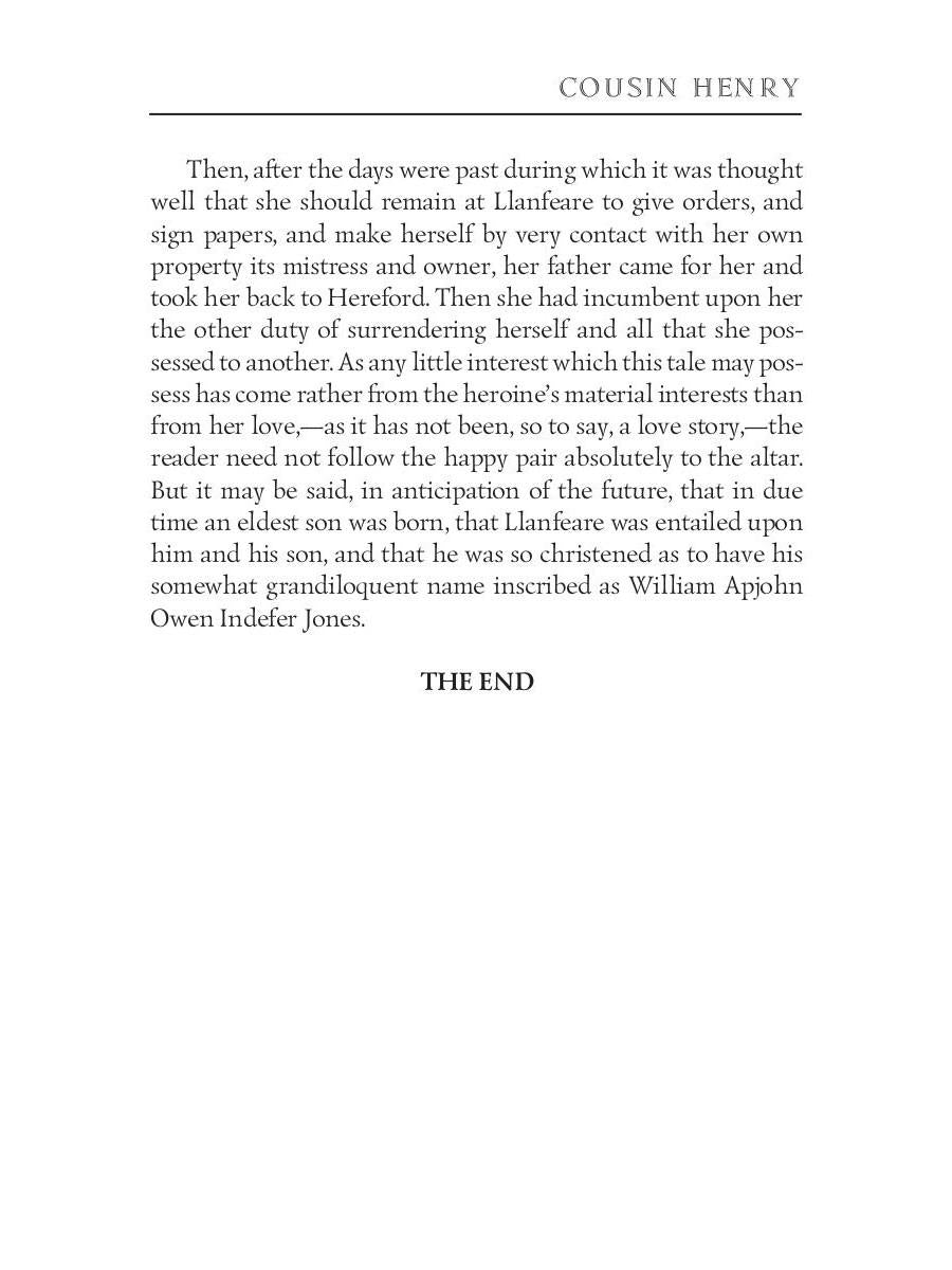 Handling time: 19 days Автор: Trollope A., «Cousin Henry = Кузен Генри»: Anthony Trollope (1815 - 1882) was an English novelist of the Victorian era. Among his best-known works is a series of novels collectively known as the Chronicles of Barsetshire, which revolves around the imaginary county of Barsetshire. "Cousin Henry" is a novel that deals with the trouble arising from the indecision of a squire in choosing an heir to his estate. It is the most unusual and intriguing of Trollope's shorter novels.