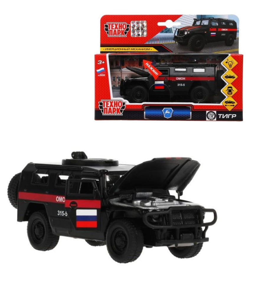 CT12-357-N-BL(MATTE)-WBМашина металл звук-свет ГАЗ ТИГР омон 13,7 см, дв.,капот, люк, инерц., кор. Т