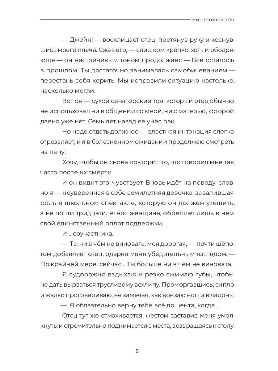 Handling time: 14 days Автор: Ди Темида, «Excommunicado»: Взмах крыла бабочки в одной части Земли может вызывать цунами на другом её конце. В жизни Джейн всё должно было сложиться по-другому. У нее были все шансы стать первоклассным и честным адвокатом, но в один из дней бабочка взмахнула крылом...