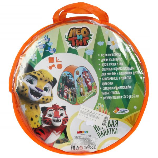 Игрушка "GFA-LEOTIG01-R 279977 Палатка детская игровая ЛЕО и ТИГ 81х90х81см, в сумке Играем вместе в кор.24". Стандарт: 24. Размер: 0.0021666666666667. Страна производитель: КИТАЙ. Производитель: ИГРАЕМ ВМЕСТЕ.