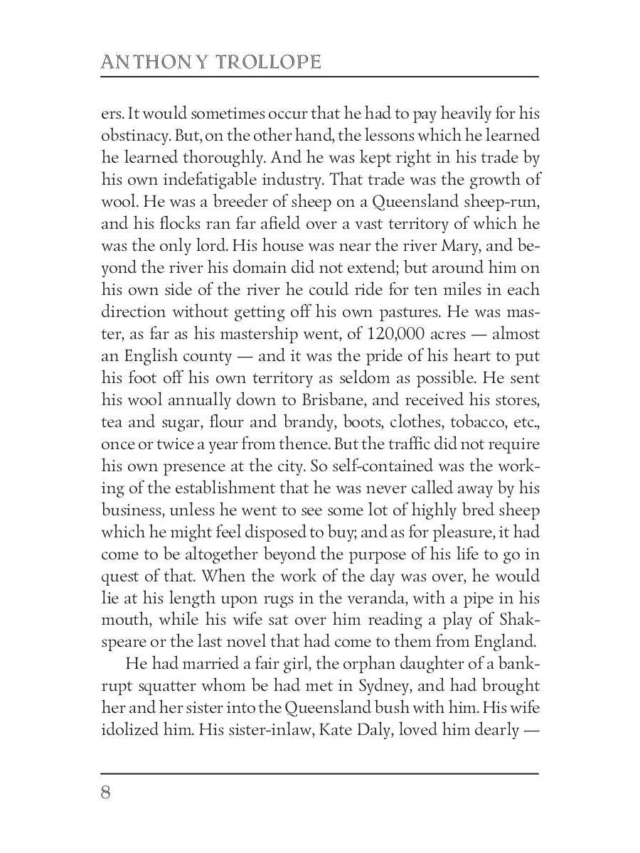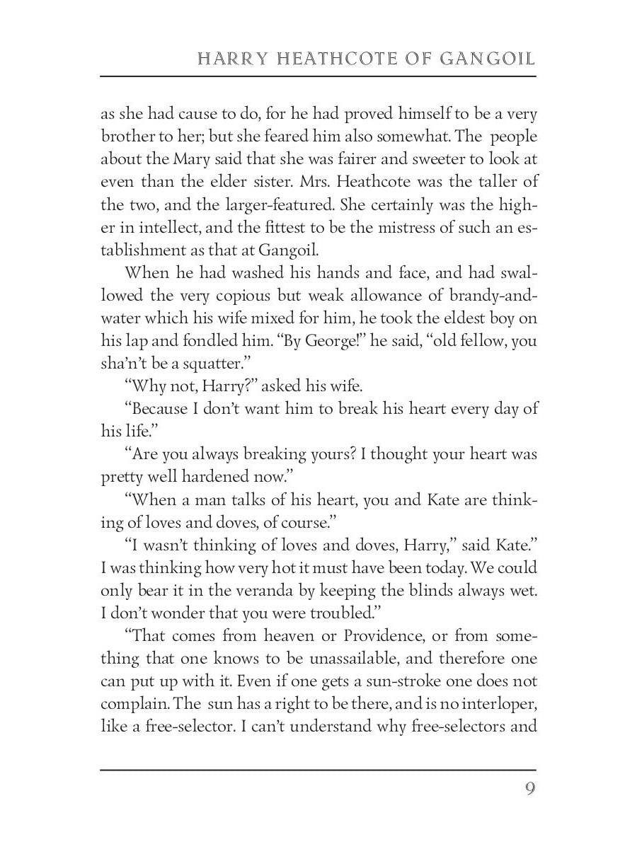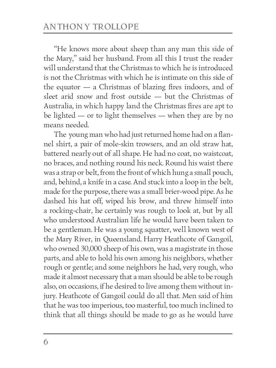 Handling time: 19 days Автор: Trollope A., «Harry Heathcote of Gangoil = Гарри Хиткоут из Гэнгула»: Anthony Trollope (1815 - 1882) was an English novelist of the Victorian era. Among his best-known works is a series of novels collectively known as the Chronicles of Barsetshire, which revolves around the imaginary county of Barsetshire. "Harry Heathcote of Gangoil" is Trollope's only Australian novel, where Harry Heathcote deals with the problems facing a young sheepfarmer, or 'squatter' in outback Australia.