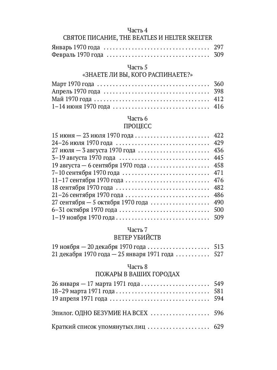 Авторы: Буглиози В., Джентри К., «Helter Skelter: Правда о Чарли Мэнсоне»: Подлинная история одного из самых громких судебных дел XX века — группового убийства «Семьей» Чарльза Мэнсона актрисы Шэрон Тейт и ее друзей. Чудовищные подробности, религия и мистика, психологический портрет «калифорнийского потрошителя» и документальный отчет об одном из самых длинных судебных процессов в истории. Разыгравшаяся в Голливуде конца 1960-х годов трагедия, о которой идет речь в этой книге, не имеет срока давности; имена ее участников все еще на слуху, а главные действующие лица за минувшие годы приобрели статус культовых личностей.