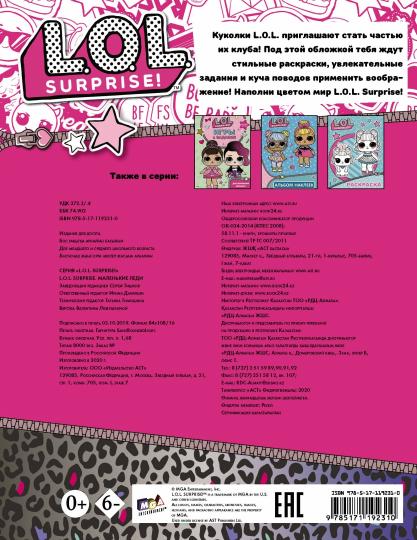Куколки L.O.L. приглашают стать частью их клуба! Под этой обложкой тебя ждут стильные раскраски, увлекательные задания и куча поводов применить воображение! Наполни цветом мир L.O.L. Surprise!Для младшего и среднего школьного возраста.