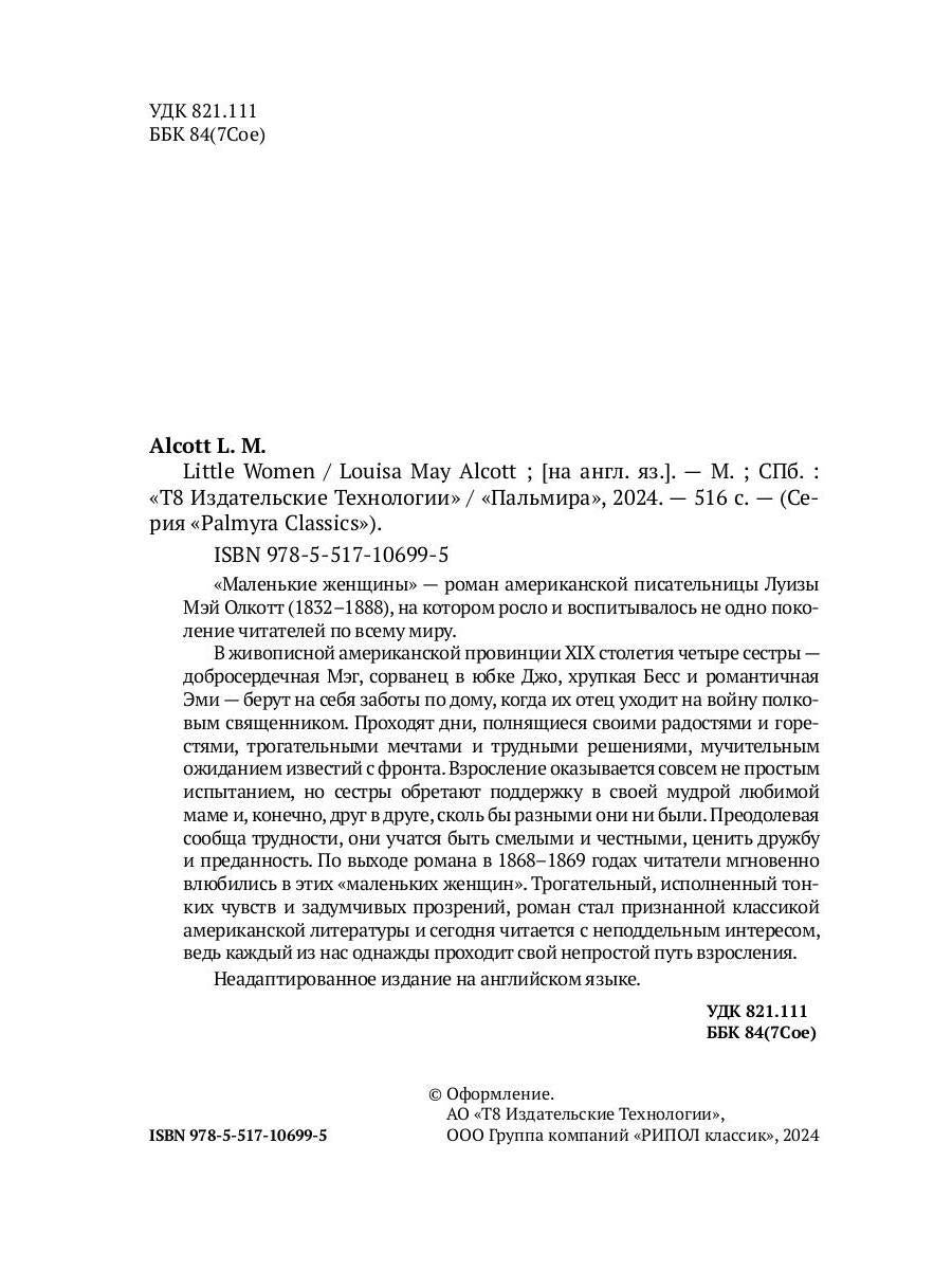 #ASTTD# Search Terms: Олкотт Л.М. , Olkott L.M. , Пальмира , Т8 RUGRAM , Palmira , T8 RUGRAM , Palmyra Classics , Palmyra Classics , 9785517106995 , 978-5-517-10699-5 , 1991317
