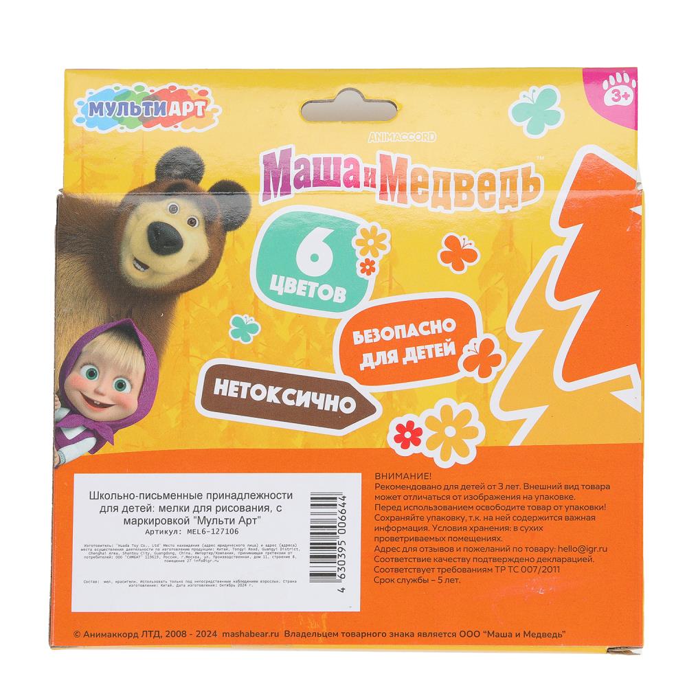 Игрушка "MEL6-127106 (48) Мелки асфальтовые 6 цв Маша и Медведь МУЛЬТИ АРТ в кор.48наб". Размер: 0.02484.