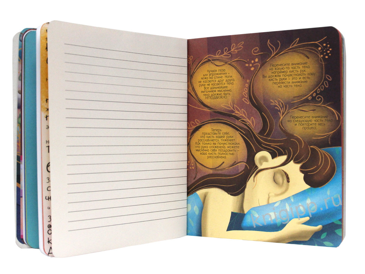 В блокноте мыслей перед сном вас ждут 160 страниц с яркими картинками, рекомендациями при бессоннице, трекеры сна, познавательными фактами о сновидениях и ещё много всего интересного!