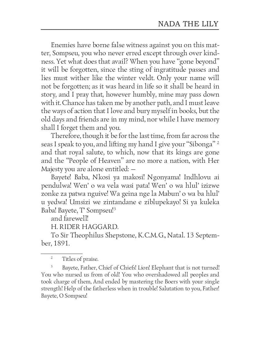 Handling time: 19 days Автор: Haggard H.R., «Nada the Lily = Нада: на англ.яз»: Sir Henry Rider Haggard was an English writer of adventure novels set mostly in Africa, and a founder of the Lost World literary genre. Nada the Lily is the thrilling story of the brave Zulu warrior Umslopogaas and his love for the most beautiful of Zulu women, Nada the Lily. Young Umslopogaas, son of the bloodthirsty Zulu king Chaka, is forced to flee when Chaka orders his death. In the adventures that ensue, Umslopogaas is carried away by a lion and then rescued by Galazi, king of an army of ghost-wolves.