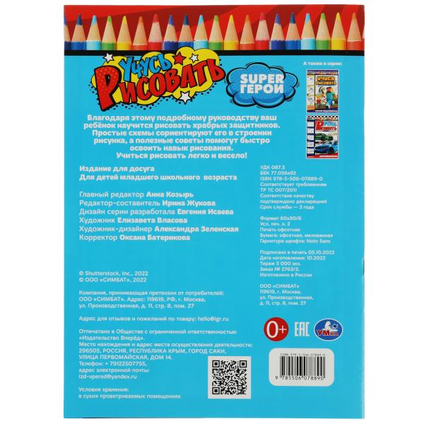 Книга "SUPER Герои. Учусь рисовать Рисуем шаг за шагом. 210х290мм. Скрепка. 16 стр. Умка в кор.50шт". Издательство: Умка. Количество страниц: 16.