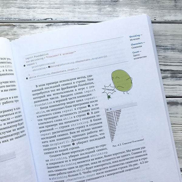 Handling time: 30 days Книга позволит начать программировать, освоив удобный и функциональный язык Swift, на котором пишут программы на устройства Apple. Вы создадите в учебной площадке Xcode Playground игру и напоминалку о днях рождения друзей. Двигайтесь по понятным инструкциям и сразу оценивайте результаты работы. Для детей от 10 лет.