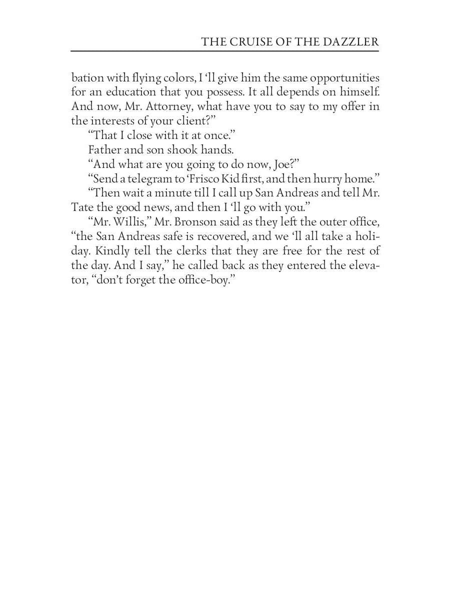 Handling time: 19 days Автор: London Jack, «The Cruise of The Dazzler = Путешествие на «Ослепительном» (на английском языке)»: Jack London was an American novelist, journalist and social activist. Pioneering the genre of magazine fiction and prototyping science fiction, he became one of the first writers, who gained worldwide fame and a large fortune. "The Cruise of The Dazzler" is an early adventure novel by London. The plot revolves around a young boy Joe Bronson who has trouble at home and at school. The arguments with his father lead him to run away and join the crew of the ship called Dazzler.