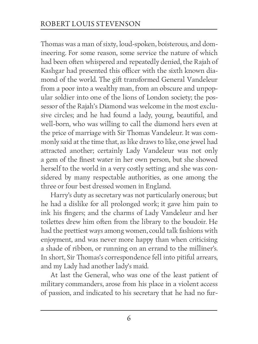 Handling time: 19 days Автор: Stevenson R.L., «The Rajah’s Diamond = Алмаз Раджи»: Robert Louis Balfour Stevenson was a Scottish novelist, poet, travel writer, and essayist. His most famous works are "Treasure Island" and "The Strange Case of Dr. Jekyll and Mr. Hyde." Now he is one of the most translated authors in the world. "The Rajah's Diamond" is a collection of four wonderful short stories: "Story of the Bandbox," "Story of the Young Man in Holy Orders," "Story of the House with the Green Blinds," and "The Adventure of Prince Florizel and a Detective."