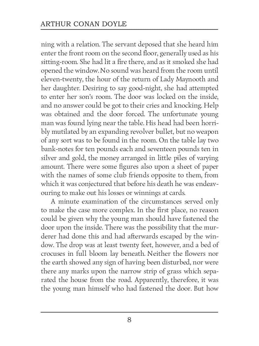 Handling time: 19 days Автор: Дойл Артур Конан, «The Return of Sherlock Holmes»: Arthur Conan Doyle was a British writer best known for his detective fiction featuring the character Sherlock Holmes. His works also include fantasy and science fiction, as well as plays, romances, non-fiction and historical novels. The Return of Sherlock Holmes was the first Holmes collection since 1893, when Holmes had "died" in "The Final Problem". The first story is set in 1894 and has Holmes returning in London and explaining the period from 1891–1894, a period called "The Great Hiatus" by Sherlockian enthusiasts.