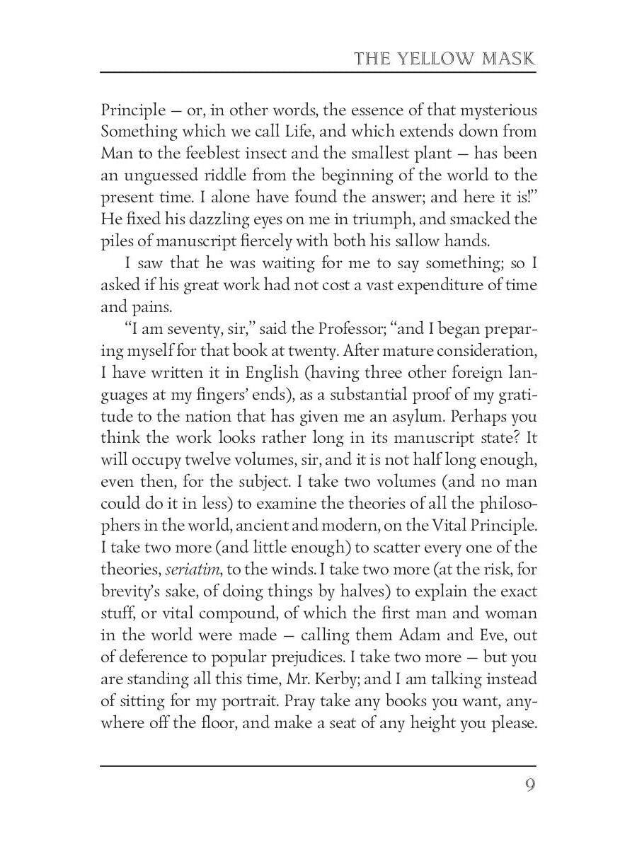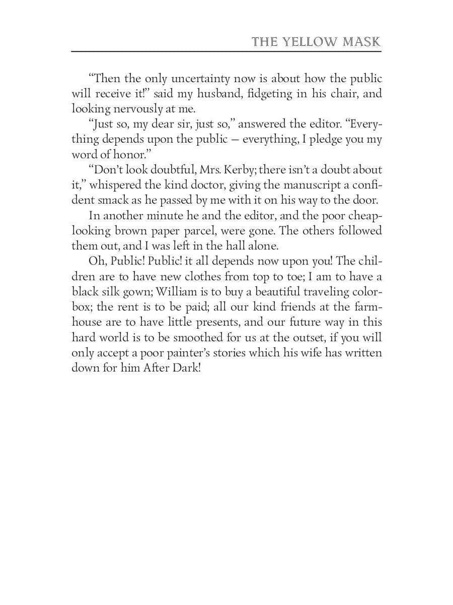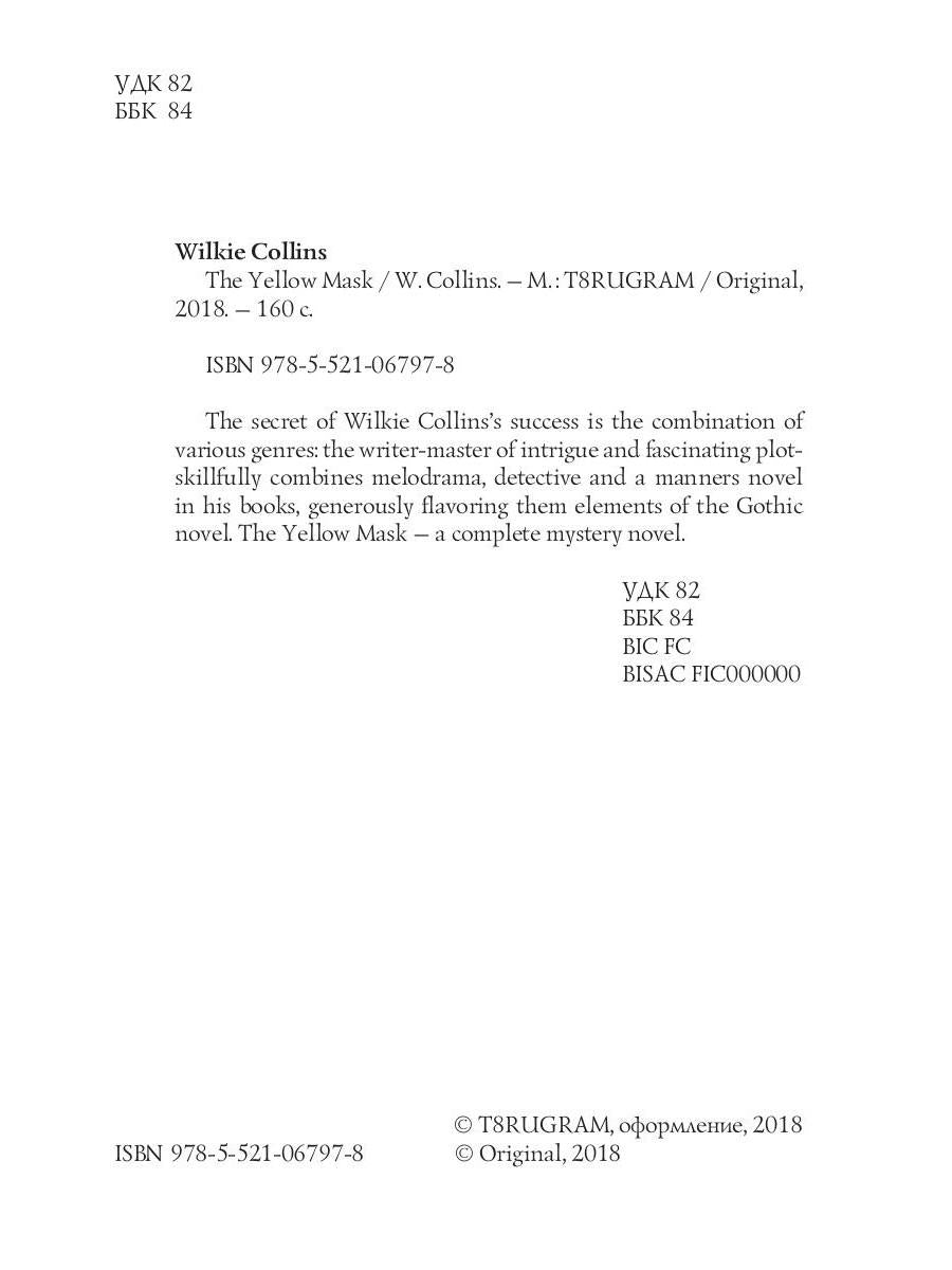 Handling time: 19 days Автор: Collins William Wilkie, «The Yellow Mask. Желтая маска (на английском языке)»: The secret of Wilkie Collins's success is the combination of various genres: the writer-master of intrigue and fascinating plot-skillfully combines melodrama, detective and a manners novel in his books, generously flavoring them elements of the Gothic novel. The Yellow Mask — a complete mystery novel.