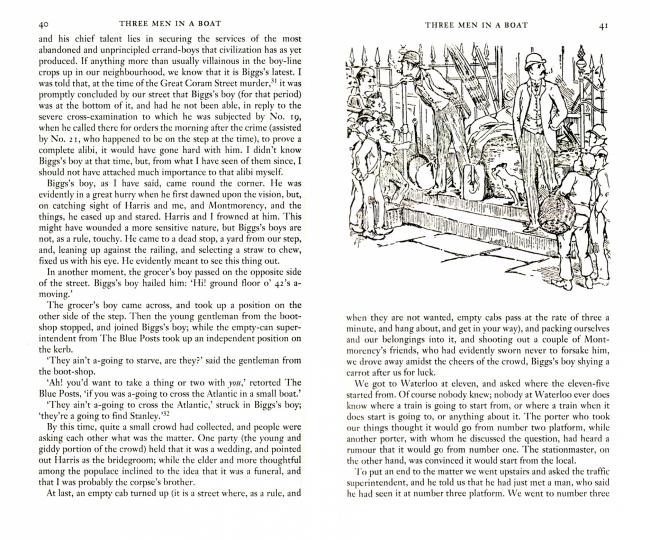 Handling time: 25 days There are four of them - George, Harris, the writer himself and that dog, .Montmorency - all participants in a boating expedition on the Thames. The difficulties and vicissitudes heaped upon these innocents develop to epic proportions as they experience the hazards of the great English waterway. Their problems are in no way diminished by the outrageous behaviour of .Montmorency, who lays waste to several riverside communities in the course of their journey.'What is а "bummel?' said George. 'How would you translate it?' 'А "bummel",' I explained, 'I should describe as a journey, long or short, without an end; the only thing regulating it being the necessity of getting back within a given time to the point from which one started...'After considerable indecision the bummel takes our heroes to Germany's Black Forest where they manage to disrupt the tranquil way of life usually enjoyed by the denizens, whose curious behaviour they closely observe and record in their account of this second epic journey Even without that dog, chaos and mayhem reign supreme.
