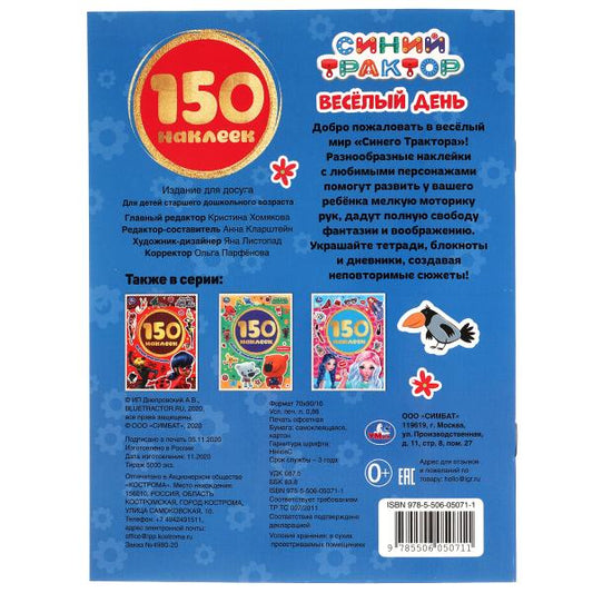 «УМКА». ВЕСЕЛЫЙ ДЕНЬ. СИНИЙ ТРАКТОР. АЛЬБОМ 150 НАКЛЕК. 155Х205 ММ, 6 СТР. в кор.50шт