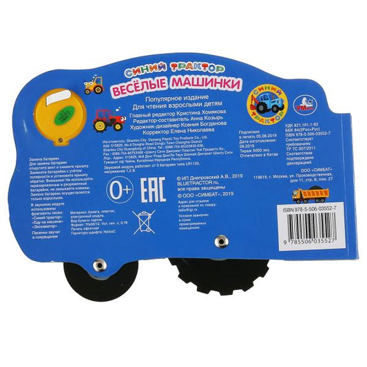 «Умка». Веселые машинки. Синий трактор (1 кн. 3 пес. Карт. книга с колесиками) 210х140мм в кор.40шт
