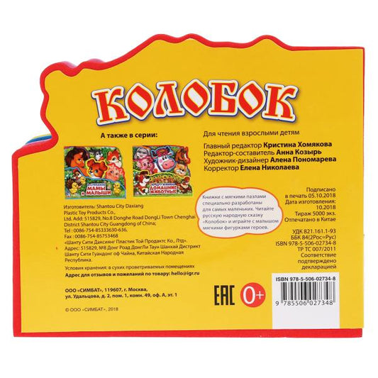 "Умка". Колобок. Книга-пищалка для ванны с закладками. Формат: 14х14см. Объем: 8 стр. в кор.60шт