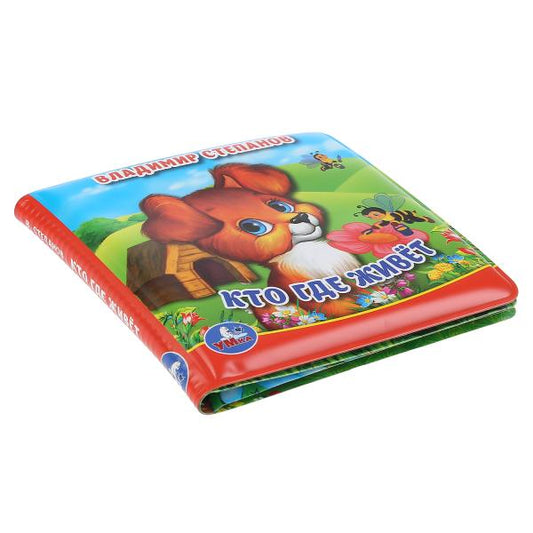 «Умка». Кто где живет? В.Степанов. Книжка с питаниелкой для ванны. Формат: 14х14см. 8 стр. в кор.60шт