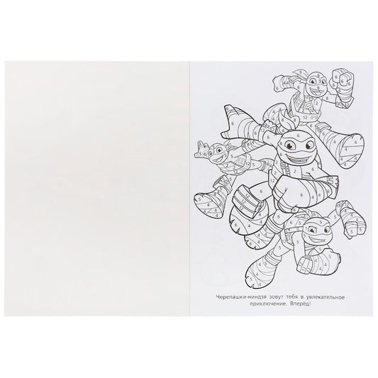 «УМКА». МАЛЕНЬКИЕ ГЕРОИ ЧЕРЕПАШКИ (РАСКРАСКА ПО НОМЕРАМ А4). ФОРМАТ: 214Х290ММ. 16 СТР. в кор.50шт